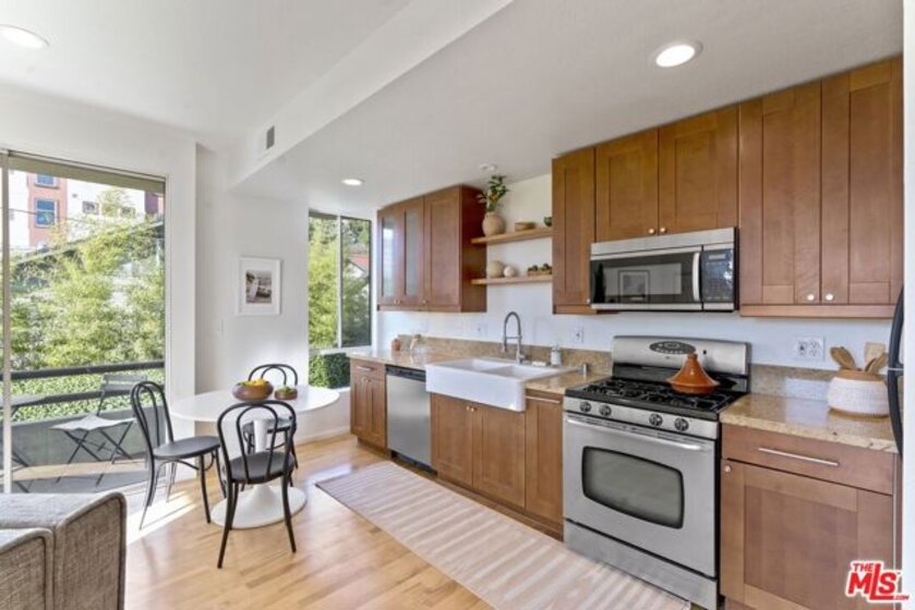 Centrally located in Virgil Village moments from beloved places like Sqirl, Dinosaur Coffee, Go Get Em Tiger, Courage Bagels, Sunset Junction and the Vista Theatre. This unit is on the second floor of the building with breathable views and loads of light. Sunsets from the two balconies are spectacular! The oversized primary bedroom features an en-suite bath and walk-in closet. Secondary bedroom features a large closet as well. The stylish kitchen boasts gas appliances and ample storage overlooking the spacious living with architectural gas fireplace. A stackable washer and dryer complete the unit. This unit also features two tandem parking spaces with storage unit. A great investment in appreciating Virgil Village. Offers due by Monday Nov, 1 at 5:00PM.