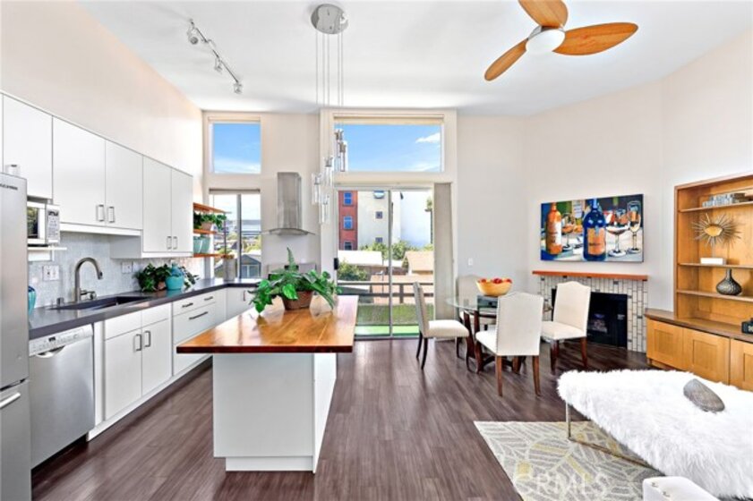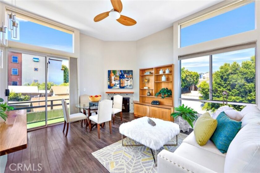 A lovely top-level end-unit condo: open floor, super bright and spacious. Absolutely turn-key move-in condition. Two large bedrooms and two full bathrooms including one roomy master suite, city view from the balcony and large windows. This beautiful unit has been totally remodeled with taste and care. High vaulted ceilings, big-picture windows & the open layout make the living size look much bigger than the data shows. Updated kitchen features quartz countertop, stainless steel appliances & huge butcher block Island, newer cabinets, and ample storage. Refaced fireplace, updated shower and bathtub with newer vanity and tile floor in the two big bathrooms. Newer laminate floor, light fixtures and fresh interior paint, Laundry inside. Two-car parking space and private storage area available. A quiet and small complex with friendly parking outside. Peaceful yet convenient location in this extremely sought after part of Los Angeles. Neighboring Silver Lake, Los Feliz, and Hollywood Sunset, Sqirl, Umami, Vermont shops, restaurants and living, working facilities and so much more.