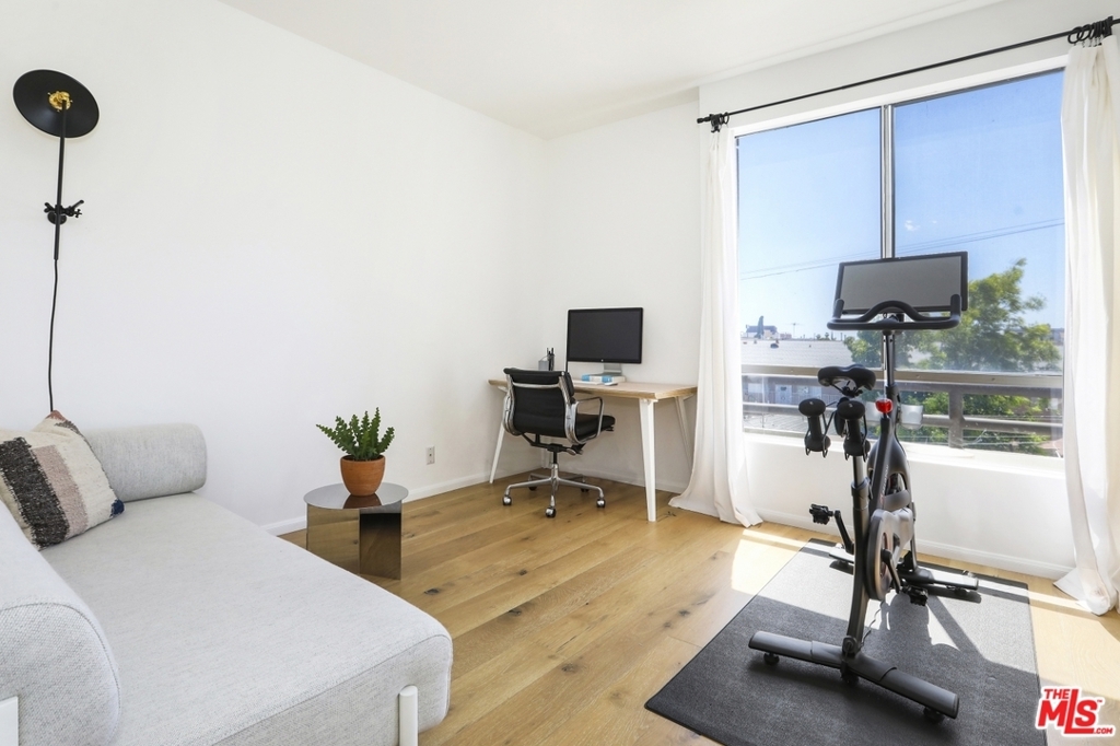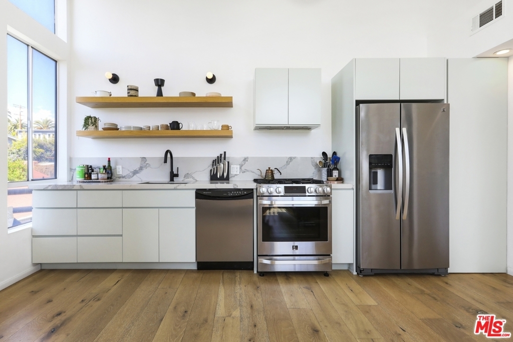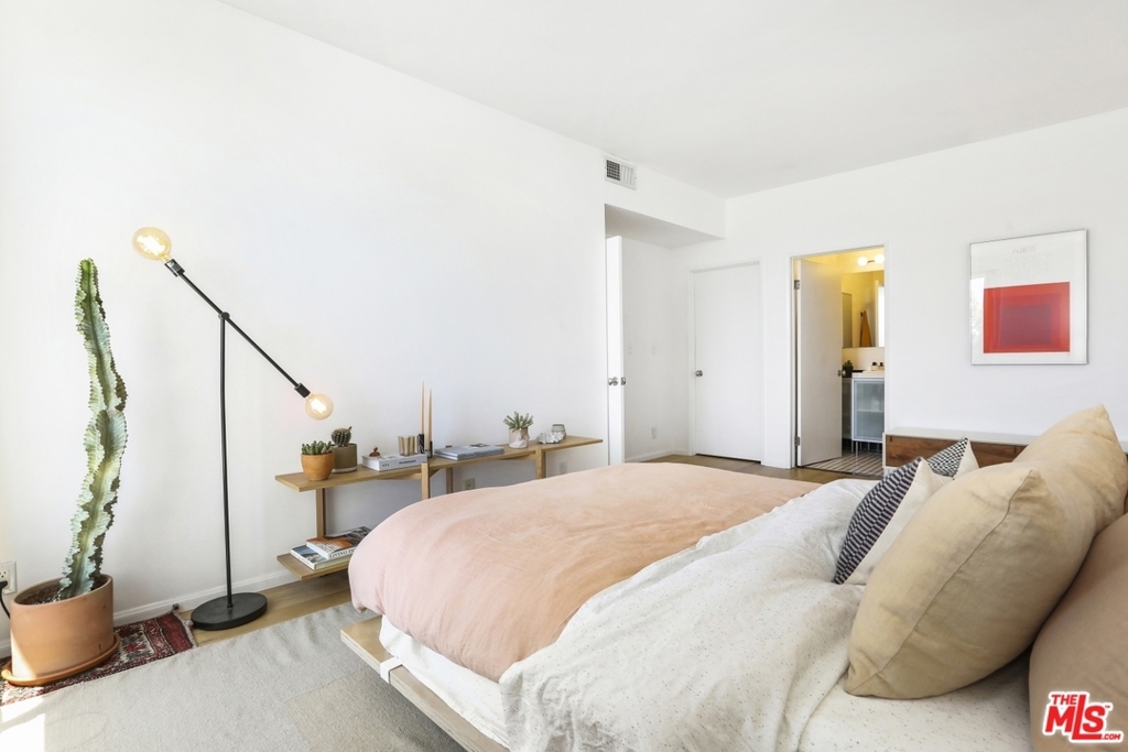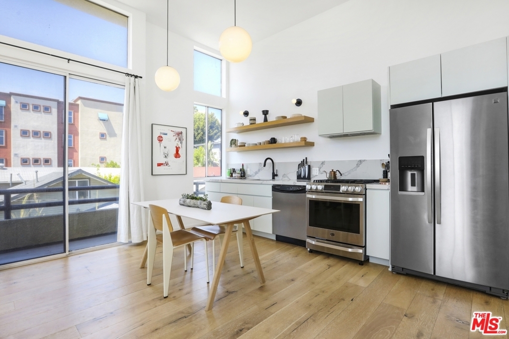This top floor, light filled unit is in the heart of it all. Perfectly located in Virgil Village - around the corner from favorites like Sqirl, Dinosaur Coffee, and Courage Bagels and only a ten minute walk from Sunset Junction. Everything has been updated; new HVAC, high-end kitchen remodel, new flooring, and updated bathrooms. Floor to ceiling windows, oversized primary bedroom with en suite bathroom, plus in-unit washer and dryer. Enjoy spectacular sunsets in the afternoons from your two outdoor balconies! Unit comes with two tandem parking spaces plus a storage unit.