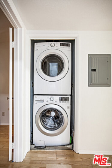 One of 7 penthouse condos on the highest floor in the back of the complex. Gorgeous clerestory windows in LR bring in beautiful natural light. Brand new paint. Quiet private balcony off LR & master bedroom surrounded by trees. Master bath w/ double sink & remodeled fully tiled shower. Sola tubes in both bathrooms bring in natural light. Kitchen with Caesarstone counters, beautiful cabinets, stainless steel appliances, & LED lighting. Replaced windows & sliders w/ new double pane windows & sliding glass doors to balcony. All appliances included. Newer Miele Dishwasher & newer LG W/D. Central air & heat. 2 car tandem parking. 14 guest parking spaces by entrance to complex. Trendy Silverlake resort-like complex with serene pool & spa w/ beautiful backdrop of greenery & surrounded by a private park with trails, picnic tables, & BBQs. Central courtyard w/ lovely sitting areas. Don't miss this condo - may be one of the best quietest locations in the complex and in pristine move in condition.
