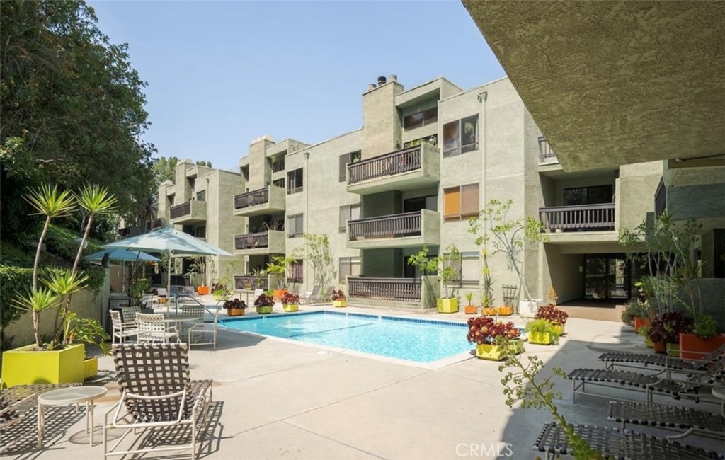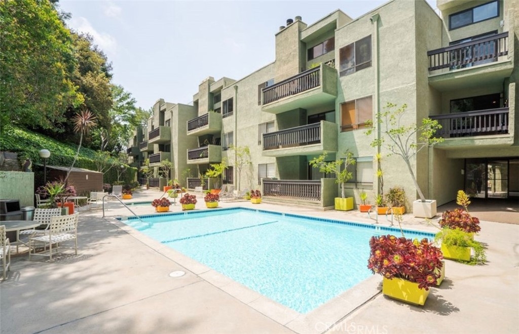 Located in the coveted Cedar Lodge community in Franklin Hills/Silverlake is this highly desired front facing unit with serene views of the hills and surrounding tree lined neighborhood. Nestled amidst lush landscapes and offering a heated pool, soothing in-ground spa, private park, recreation room, and BBQ/picnic areas throughout, this haven offers true resrort-style living. The open floor plan 2 bed and 2 bath home features flooring covered in rich hardwood and loads of natural light spilling in through large windows and sliding doors. The expansive living room with wood-burning fireplace offers a comfortable space to relax and unwind while the spacious balcony is the perfect place to enjoy a morning cup of coffee while soaking in peaceful views of nature all around. There is a separate dining space along with a galley kitchen with tons of storage and space to create your favorite dishes. A guest bedroom is serviced by a hallway bathroom while the spacious primary suite offers walk-in closet and an en-suite bathroom with dual vanities. In unit laundry and two assigned parking spaces in the secure underground structure are just some of the added benefits of living here. Charmingly situated in prime Silver Lake near popular shopping, hip restaurants, weekly farmer's market, Trader Joe's, destination trails, Silver Lake reservoir, popular parks, and within Ivanhoe Elementary school boundary. Convenience and comfort await you in this wonderful home, so come for a tour while you still can!