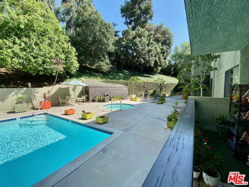 Welcome Home to Cedar Lodge! This is where you want to live. In a most desirable pocket of prime Silverlake. This rare & spacious 2 BR, 2 BA unit has is all. Eat-in kitchen w/ all appliances. Master BR w/ en-suite BA. Hardwood flrs in BR's, in-unit laundry. Great floor plan for maximun comfort, flexibility & efficiency. Lrg Liv Rm overlooking sun soaked private patio with direct views to pool & calming green belt w/ evergreens - escape reality with abundant fresh air & space! Located in the Ivanhoe Elementary School zone. Cedar Lodge grounds encompass a lovely tranquil & private wooded park-like area exclusively for residents which includes dog walking station, meandering path to BBQ & picnic areas - feels like you are in the Sierras! 2 x covered parking spaces + plenty of guest parking. Low HOA's. So close to Trader Joe's, Starbucks, Gelsons, Silverlake Junction - & so many top-rated restaurants, etc. Must See!