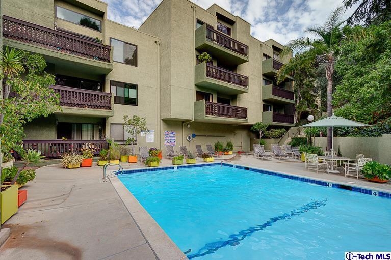 Great opportunity to join trendy Silver Lake resort-like complex with mature landscaping, beautiful eucalyptus and pine trees, private dog-friendly park, trails & more. This lovely second floor condo features two bedrooms, two bathrooms with open floor plan. Eat-in kitchen includes breakfast bar, pantry storage, linoleum flooring, and tile back-splash. Kitchen flows into dining area and comfortable living room with gas fireplace and balcony with park views. The spacious master bedroom includes ceiling fan, master bath with dual vanity, walk-in closet, and balcony access. Interior appointments include stackable washer/dryer in unit, hallway storage, central A/C & two garage parking spots. Association amenities include 15 guest parking spots, lovely central courtyards, pool, spa, controlled access, recreation room, bike storage & more. Located in the coveted Ivanhoe Elementary School district. Close to Sunset Junction, Trader Joe's & everything Silverlake has to offer!