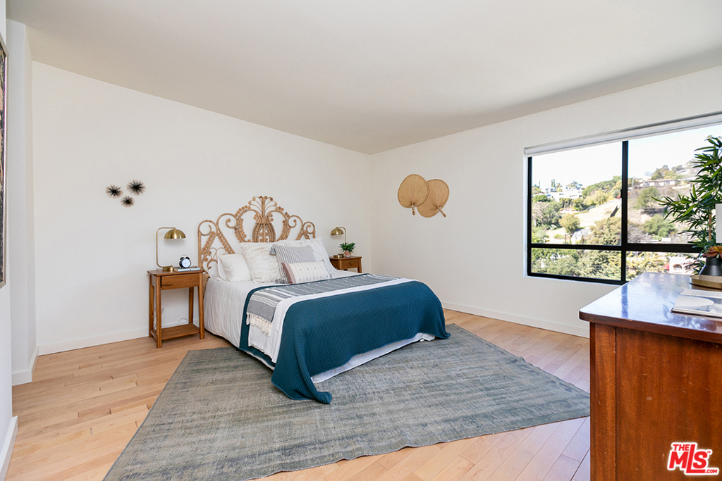 OFFERS DUE FRIDAY, 3/19 BY 10AM. Rare top floor unit in prime Silver Lake. This bright and spacious 2bedroom 2bath condominium is one of the larger homes with high ceilings, a fireplace, large windows, hardwood floors, and a private patio with unobstructed west facing views of the beautiful Silver Lake hills. Two bedrooms including an ensuite Master with dual vanities and abundant closet space. There is in-unit laundry, central air and covered parking for one car plus guest parking. Surrounding the unit are rambling pathways, sitting areas, a conference room, BBQ's, and a resort like pool & spa. HODs include earthquake Insurance. A short stroll the Silver Lake Reservoir, Sunset Junction, and a plethora of restaurants and shops. Excellent unit in a lush and tranquil condominium community. Zoned to Ivanhoe Elementary school. Please check with LAUSD for enrollment eligibility.
