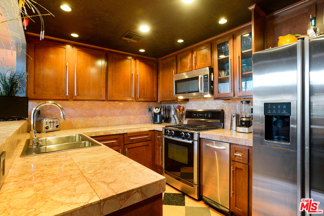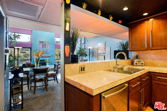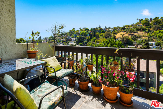 THIS is the condo your clients have been waiting for! Inarguably the best location in the complex, this top floor, southwest corner unit affords privacy and panoramic city, hillside or mountain views from every room. A secluded formal entry leads to the open living/dining area, which feature a fireplace, terrace and 13 foot, soaring ceilings. The kitchen has been updated with new "shaker" style cabinetry, new counters and backsplash, and features Bosch Appliances. The spacious master suite features 3 closets, views and a private, updated travertine and granite bath with double sinks. Laundry "in unit". Building amenities include a beautiful pool & spa area, a community/rec/meeting room, picnic grounds, an owner supported lending library and ample guest parking. Great Silver Lake location, close to Gelson's, Trader Joe's and Sunset Junction. Ivanhoe Elementary.