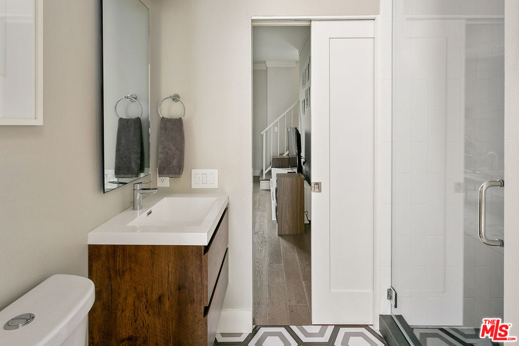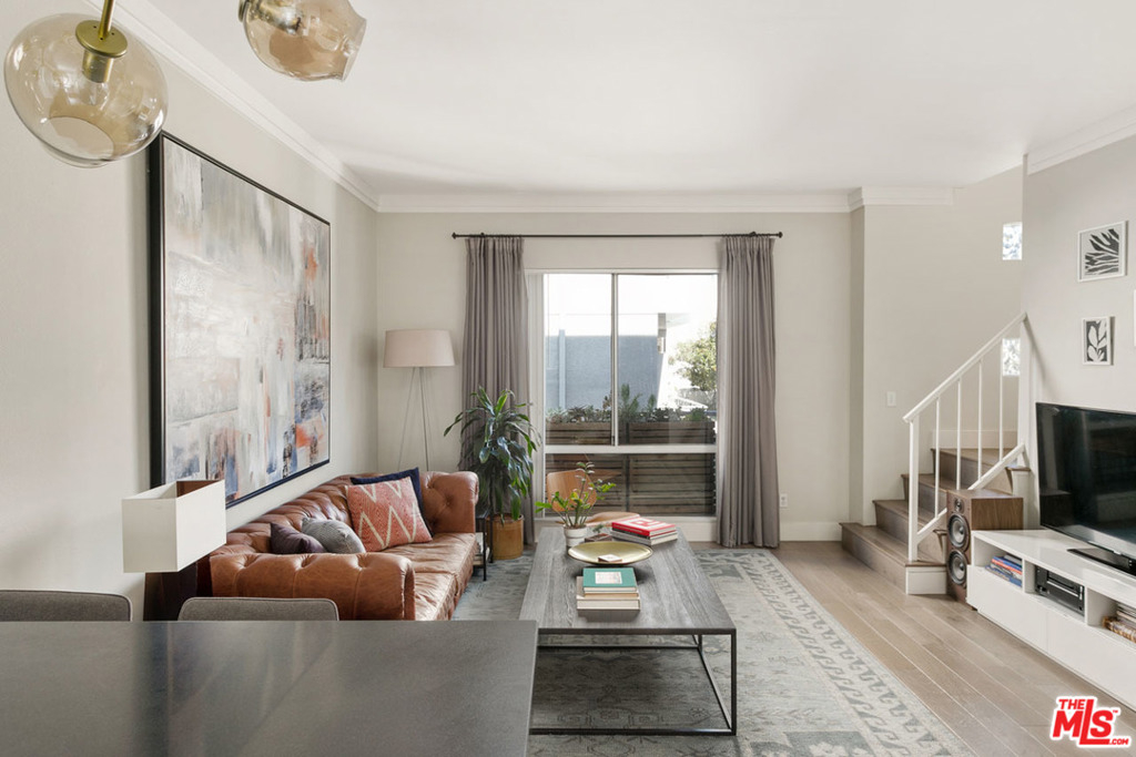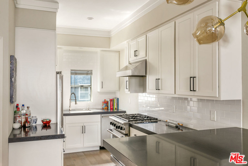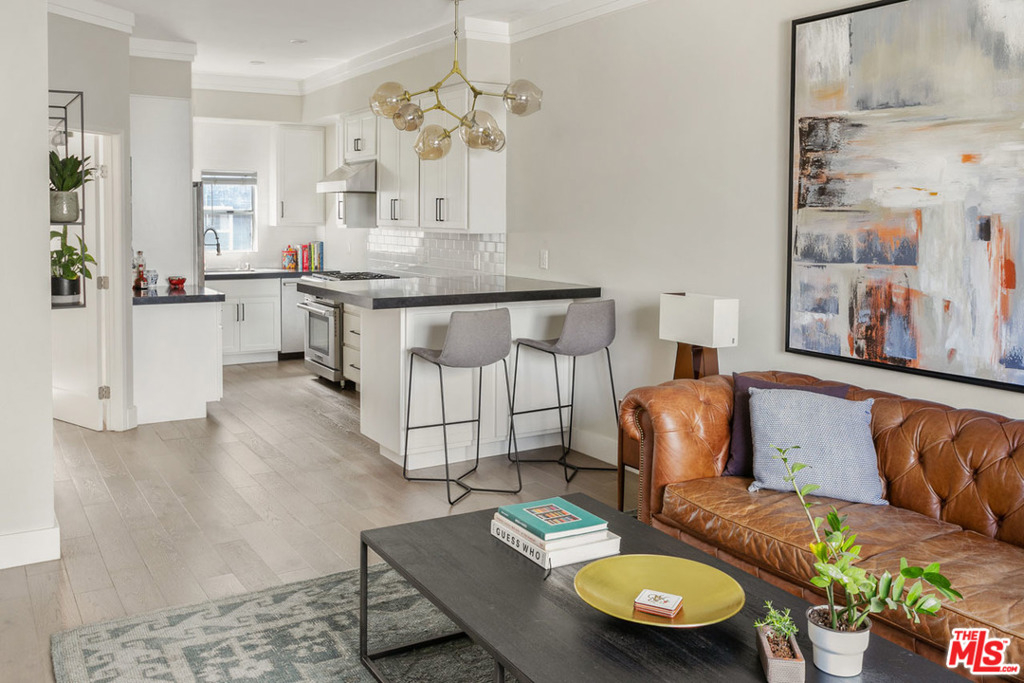 Perched at the top of a cul-de-sac in trendy Echo Park, this stylish condominium delivers epic views from a private rooftop deck. The beautifully remodeled unit features hard surface flooring and an updated kitchen with a full-height tile backsplash, dining counter and high-end stainless appliances. Two upstairs bedrooms are ensuite, and with the additional main-level bedroom plus an oversized laundry room there's plenty of space to work from home and store your gear. The cherry on the sundae is the private rooftop deck, perfectly sized for dining and lounging with a panoramic view. Enjoy central heat+air, a washer-dryer and side-by-side two car garage. This intimate gated community provides a spa; dog-owners will love the convenience of being a few doors away from Everett Park. Coffee, dining, entertainment and recreation are nearby at Echo Park and Downtown LA favorites including Eightfold Coffee, Guisados Tacos, Lassen's Market, Dodger Stadium and the hiking trails of Elysian Park.