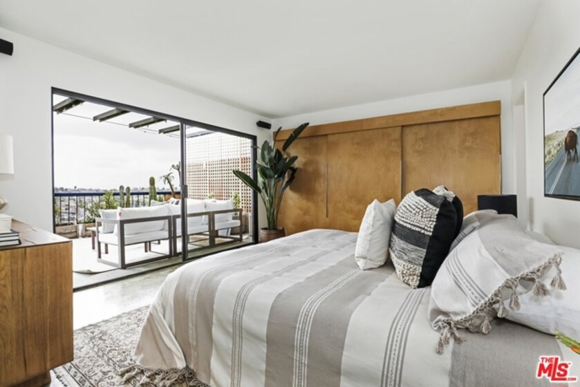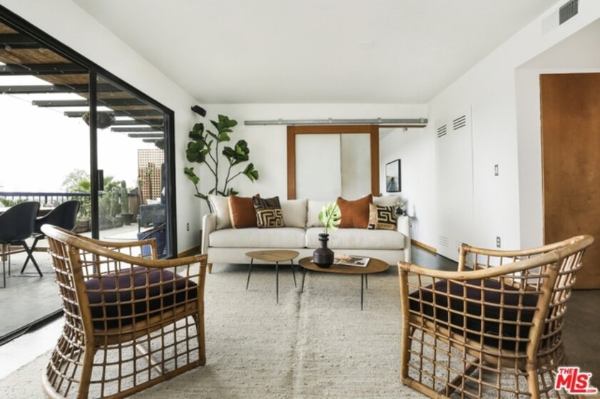 Rare remodeled 3 bd/2bth condo in prime Silverlake w panoramic views of the Downtown skyline from both the master bdrm & the oversized private 450sq+ ft patio. This bright unit has an industrial chic aesthetic & feat an open concept floorplan, exposed wood finishes, stained concrete floors throughout, gas fireplace with concrete mantle, glazed barn door leading to the master bdrm, central hvac w Nest Thermostat & in-unit laundry. Wide glass sliding doors leading to the huge lushly landscaped patio which feels like an additional living rm & provides the best of indoor-outdoor living. Watch the fireworks above Dodger's Stadium in the distance while entertaining a large dinner party. 9-unit gated building w ground floor access to the unit off of the communal courtyard (no stairs). Adjacent to the Descanso Steps which make access to the shops & restaurants of prime Sunset Junction a breeze. Close to the Reservoir, Farmer's market, public transport. Side x side gated parking with storage.