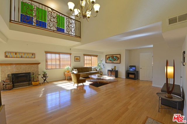 Dramatic split level townhouse style penthouse with soaring ceilings and very large private roof top patio with panoramic view to the city and around to Griffith Park. Located in an emerging popular Hollywood Historic district, this newer building is close to entertainment and shopping and the soon to be built Hollywood Central Park. Get in now before the values explode. The unit features a very large living room with two story ceiling height, fireplace, powder room and, hardwood flooring that leads to a bright spacious dining area off of the kitchen complete with upgraded stainless appliances, granite counter tops, newer cabinetry, and laundry. On the main level is a large master bedroom with a large en suite bath. Upstairs there is a large second bedroom, bath, and a den/office which leads to the spacious roof top patio where you can BBQ and relax watching the sunsets. 2 side by side parking spaces. Guest parking also available. About an 8 minute walk to Griffith park!