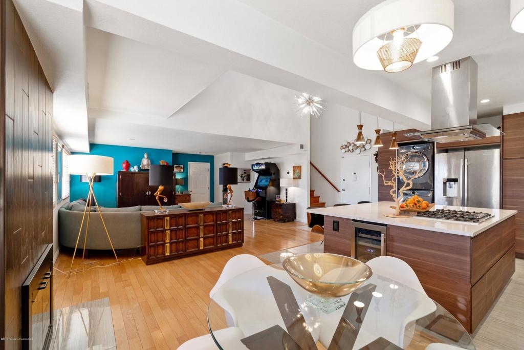 Rare opportunity to own a town home in coveted Los Feliz with an epic, private rooftop oasis. Enjoy views of the Griffith Park Observatory and DTLA to the ocean. The main level with a dramatic, double height interior welcomes you to a new open concept kitchen, dining room, living room and fireplace. The main level features a large master suite and powder bath. The second level consists of two additional bedrooms and access to the rooftop deck. 2 side by side parking spaces and 5 guest spaces.