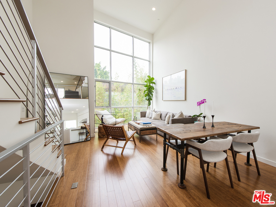 Jay Vanos designed, architectural townhome, in the heart of Silver Lake. A two-bedroom, two-and-a-half bathroom live-work space with 18-foot ceilings, floor-to-ceiling windows, and bright natural light throughout. Newly renovated chefs kitchen, with Viking stainless steel appliances, Silestone countertops, and custom cabinetry. Spacious two-bedroom suites, each with en-suite baths and ample walk-in closets. Direct access, double garage with side-by-side laundry unit, extra storage, and a Culligan water purification system. Private rooftop deck with sweeping views of the San Gabriel and Verdugo Mountains, and the landmark Griffith Observatory.