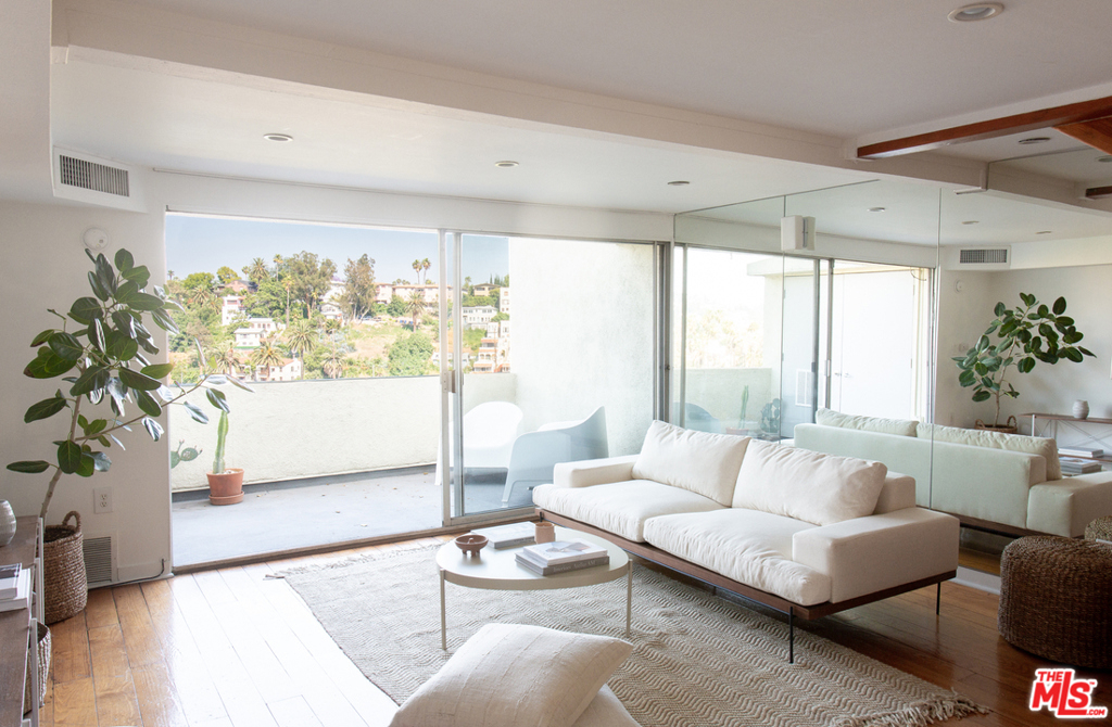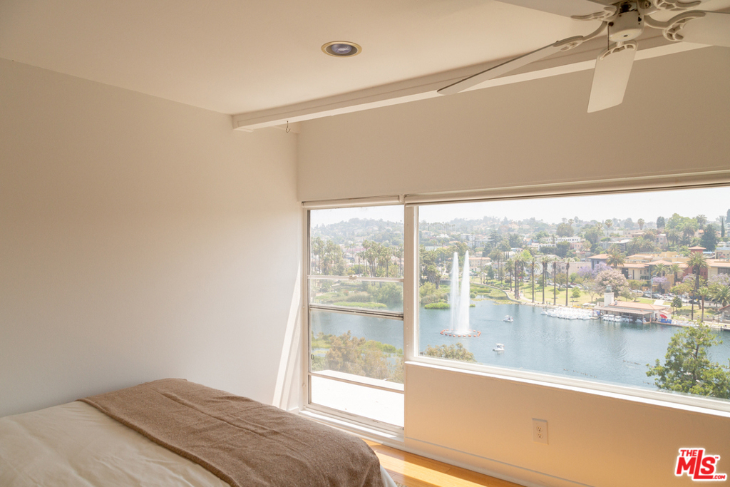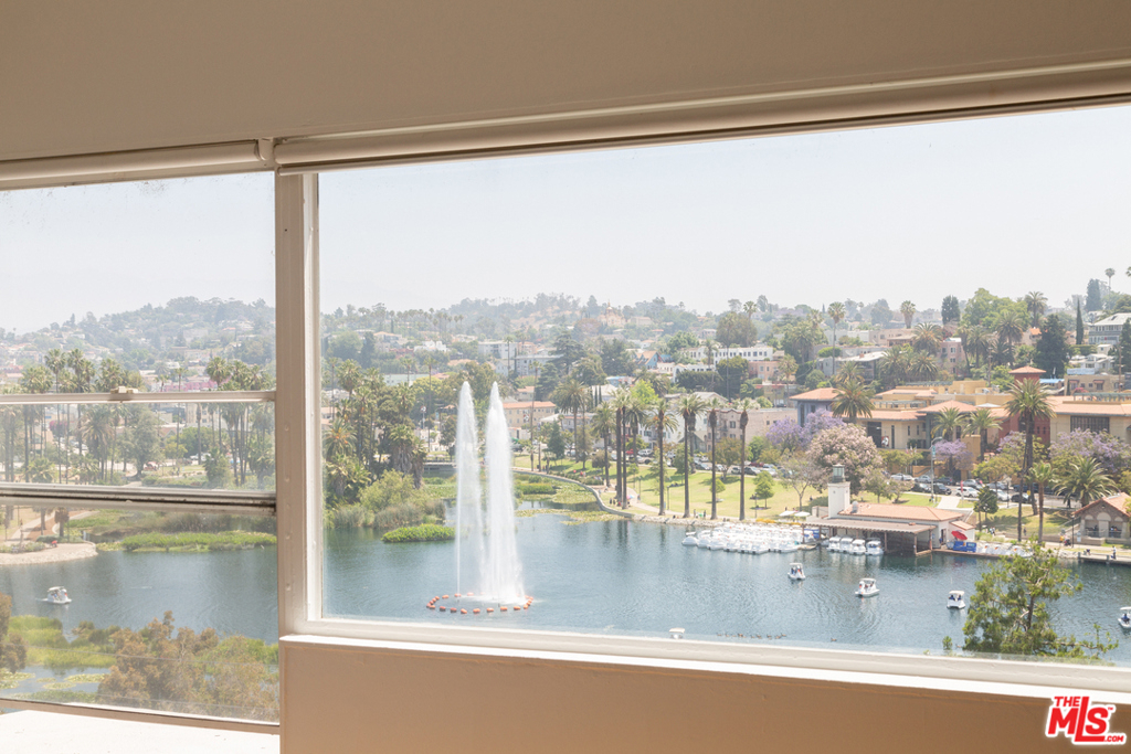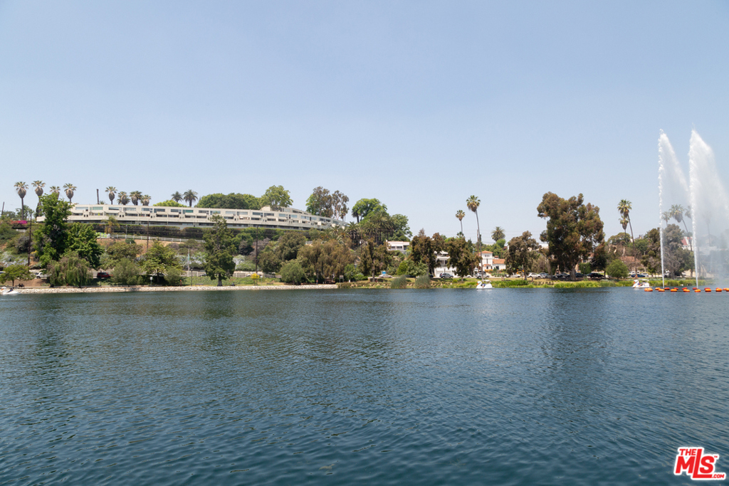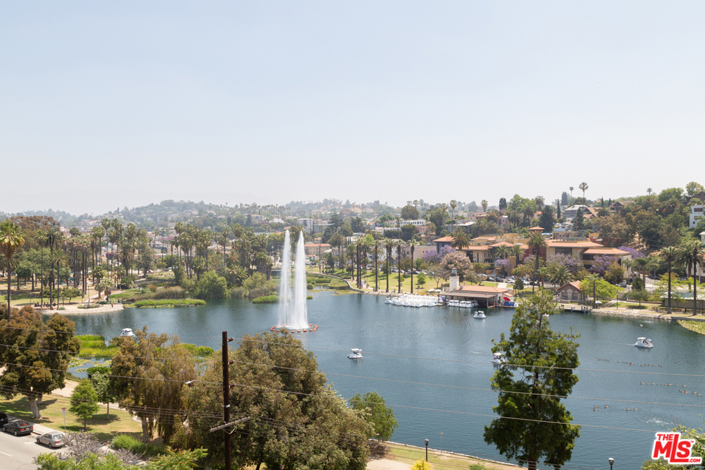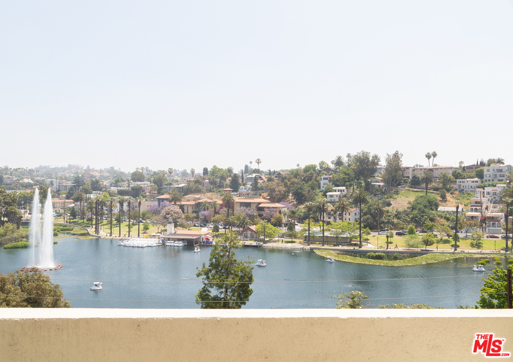 A fantastic opportunity to own a 2-story townhome within Echo Park's Lago Vista, an iconic modernist complex designed by architect Allyn E. Morris in 1973. Long heralded by fans of mid-century modern architecture, Morris' clean lines, open floor plan, cobalt blue mosaic kitchen/bathroom tiles and concrete stairs have been thoughtfully preserved in this highly coveted unit ideally located within the complex. The open concept kitchen and living room opens to a private balcony with incredible sweeping views of the San Gabriel mountains, the downtown skyline and beautiful Echo Park Lake. Upstairs you'll find 2 bedrooms and 1 bathroom with a skylight and even more spectacular views. This private gated building features a heated pool, a private dog run, and 2 covered parking spaces. The best of Echo Park and Silver Lake is just outside your door including Mohawk Bend, Elf, Button Mash, Square One, and the Friday night farmer's market.