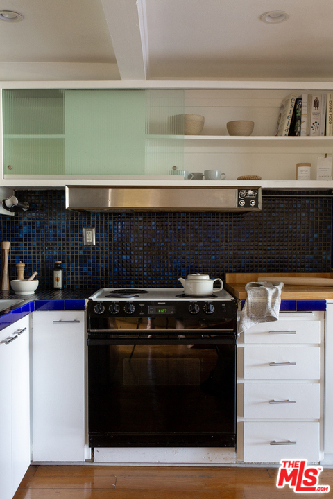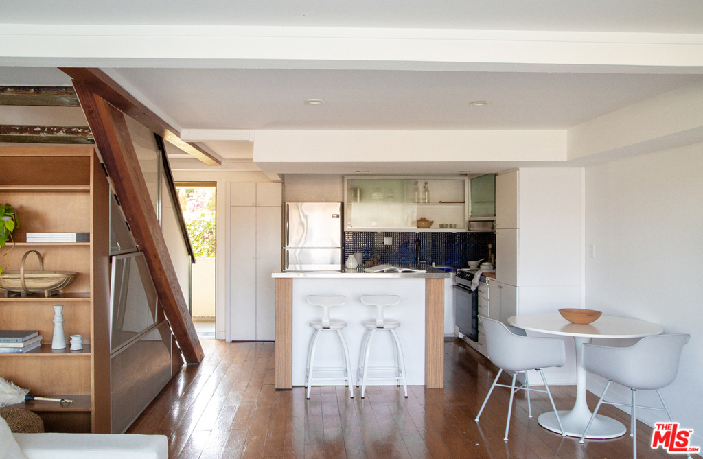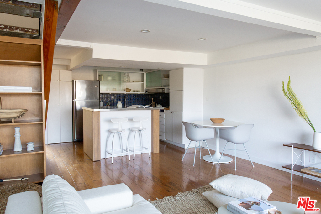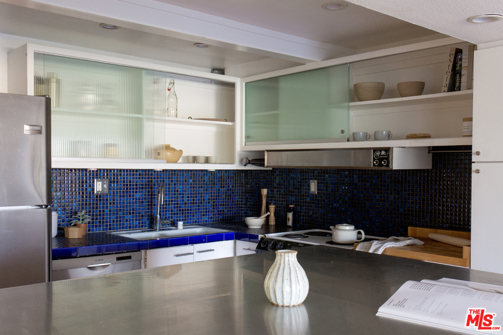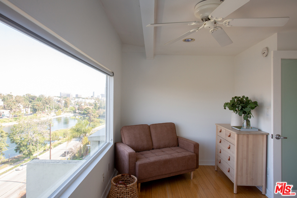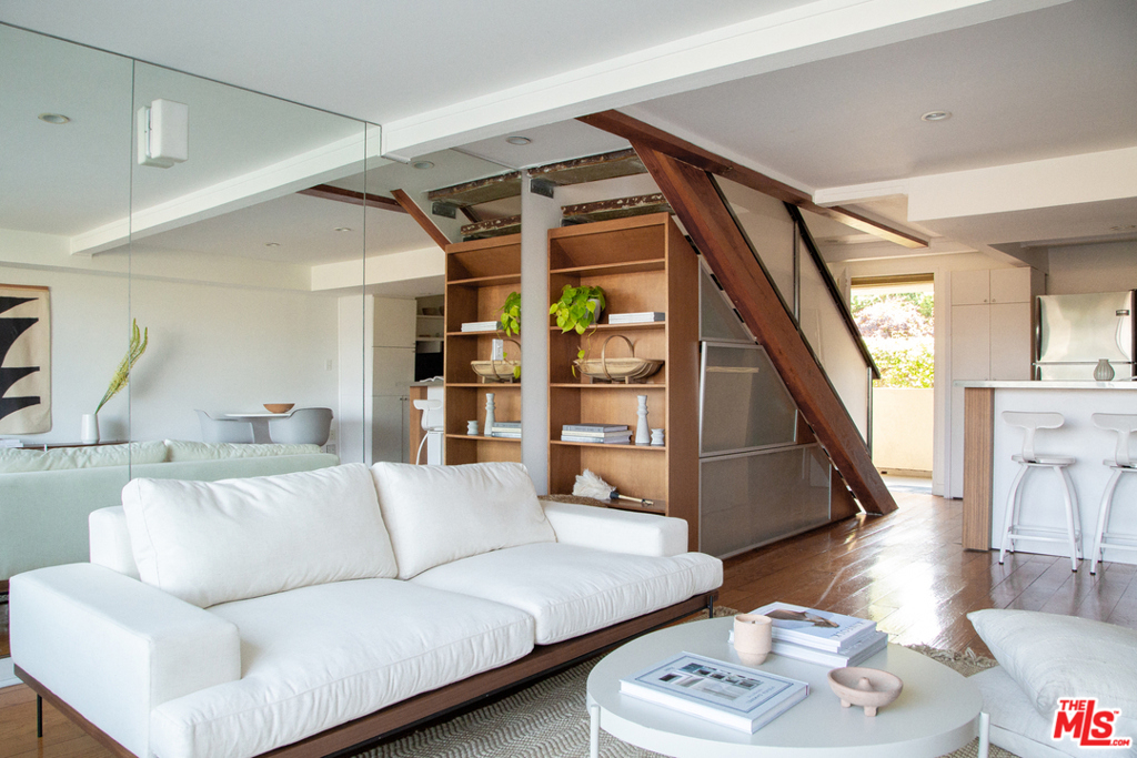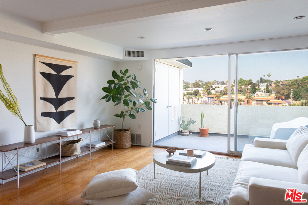 A fantastic opportunity to own a 2-story townhome within Echo Park's Lago Vista, an iconic modernist complex designed by architect Allyn E. Morris in 1973. Long heralded by fans of mid-century modern architecture, Morris' clean lines, open floor plan, cobalt blue mosaic kitchen/bathroom tiles and concrete stairs have been thoughtfully preserved in this highly coveted unit ideally located within the complex. The open concept kitchen and living room opens to a private balcony with incredible sweeping views of the San Gabriel mountains, the downtown skyline and beautiful Echo Park Lake. Upstairs you'll find 2 bedrooms and 1 bathroom with a skylight and even more spectacular views. This private gated building features a heated pool, a private dog run, and 2 covered parking spaces. The best of Echo Park and Silver Lake is just outside your door including Mohawk Bend, Elf, Button Mash, Square One, and the Friday night farmer's market.