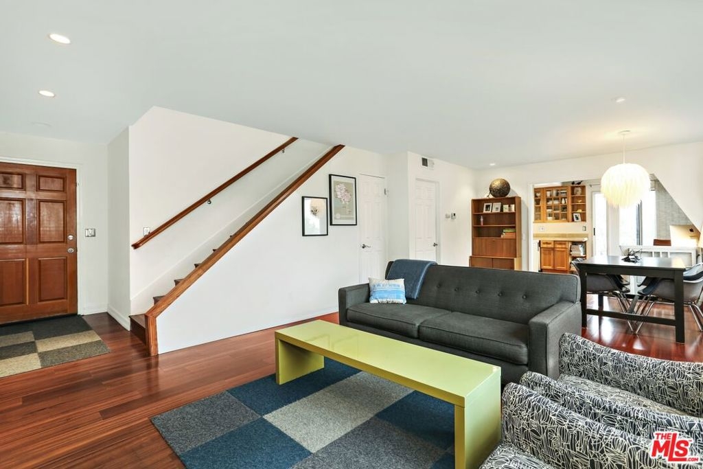 Located just steps to Sunset Junction, this spacious and modern 2-level townhome boasts lush green views of Bellevue Park and the hills of Silver Lake. This rare corner unit offers over 1,200 square feet and with great light, sliding glass doors that open to a cozy patio with park views, and an easy and open floor plan. An inviting open-concept main floor flows from an updated kitchen with stainless steel appliances, through a bright, park-view dining room and into a roomy living room complete with powder room. Upstairs both bedrooms are ensuite and nearby is an easily accessible in-unit washer and dryer. The building is securely gated and the garage has two car tandem parking plus an area for additional storage. A dream location in the heart of Silver Lake near hot spots such as Courage Bagels, La Colombe Coffee and the Silver Lake Farmer's Market. Los Feliz, Hollywood, Echo Park and many other great neighborhoods are just moments away. Units in this building are a rare find!
