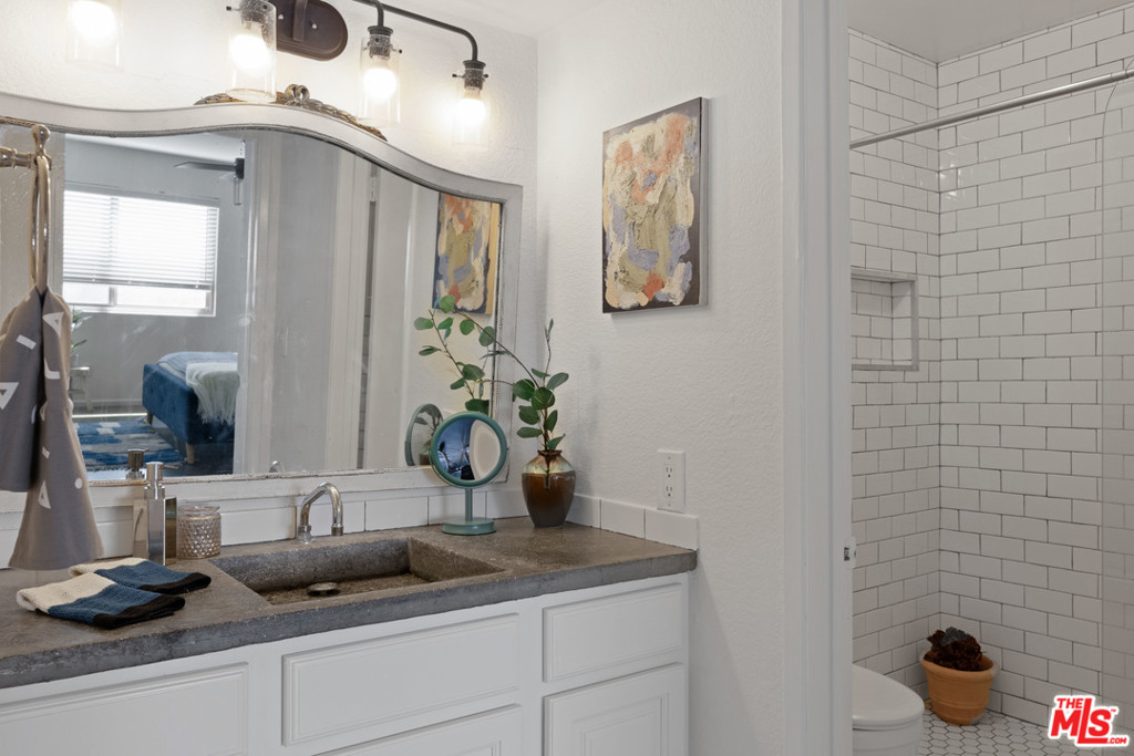 Think you can't live in a peaceful Silver Lake neighborhood--and have a pool--for under $1M? Think again. Concrete floors and an open concept living/dining area give a chic, industrial edge to this welcoming condo. The elegantly remodeled kitchen is a chef's dream with an oversized island perfect for prep work and serving your guests. The spacious bedroom gets plenty of natural light and includes a generous walk-in closet. The stylish bath features a unique concrete sink operated by ultra-hygenic foot pedals, and a private balcony boasts soaring views of the LA skyline and the pool below. 1707 Micheltorena, just a stones throw from Sunset while feeling remarkably calm and suburban, is one of the area's best kept secrets.