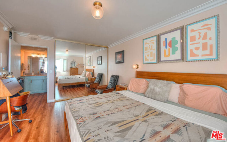 Perched in the heart of Silver Lake, this bright and open luxury condo showcases sweeping panoramic views from its private balcony spanning south, west, and north capturing rooftop city scapes, glowing sunsets over the hills, sparkling evening lights, the iconic Hollywood Sign, and passing jetliners gliding across the skyline. Above, a stunning rooftop deck elevates the experience even further, offering a dramatic, head-on view of the Downtown skyline alongside captivating jetliner vistas perfect for entertaining or unwinding under the city lights.Inside, the thoughtfully designed open floor plan is finished with rich hardwood-style flooring throughout the living, dining, and bedroom spaces. The inviting living area features a cozy gas fireplace, while the adjoining dining space flows seamlessly with a convenient kitchen pass-through. The generously sized bedroom includes a large closet and is complemented by a tastefully updated bathroom. A newer HVAC system adds modern comfort and energy efficiency year-round.Additional highlights include two full (non-tandem) parking spaces and ample storage. Residents enjoy access to a range of amenities, including a pool, recreation room, elevator, secure entry, trash chutes, and community laundry. HOA dues cover basic cable, internet/Wi-Fi, earthquake insurance, water, and gas. Ideally located between Sunset Boulevard and the Silver Lake Reservoir, this home offers close proximity to some of the neighborhood's best dining, shopping, and lifestyle destinations.