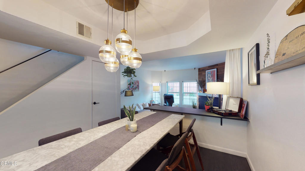 This contemporary Mediterranean Silverlake townhome is charming and move-in ready! The lovely townhome has been tastefully remodeled. The first floor has a convenient half bathroom. The remodeled kitchen has granite countertops, white cabinets, stainless steel appliances, and leads to an enclosed patio. The spacious dining area is perfectly located between the kitchen and living room. The bright living room has multiple windows, wood-like floors, and a cozy fireplace. The second floor has two spacious bedroom suites with their own bathrooms and plenty of closet space. The largest bedroom has a custom Elfa closet system and has access to a spectacular rooftop terrace with city views. The combination washer and dryer is located in an upstairs hallway closet. There are two assigned tandem underground parking spaces with a storage shed and a community storage area. This 16 unit complex offers a gated entrance, security cameras, guest parking, spa, community room, and dog run. The home is conveniently located nearby parks, shops, restaurants and freeways.