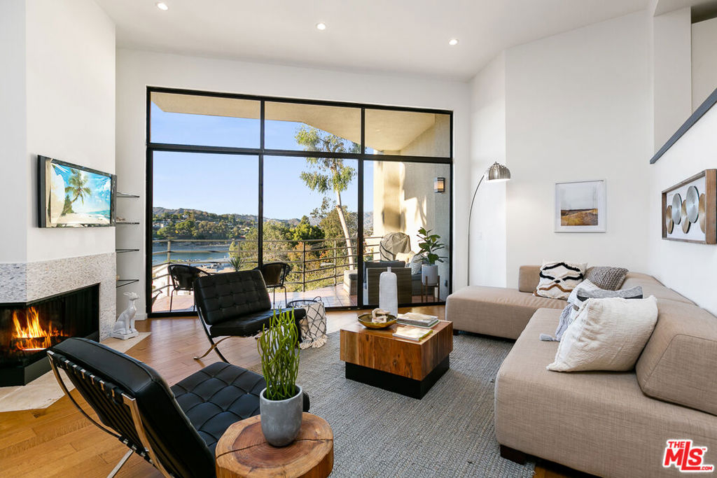 This classy 2BR/2BA condo overlooking the Silver Lake Reservoir offers a rare opportunity to own a piece of local architectural history. Silverview II, designed in the early Eighties by Ko Kiyohara and Walter Abronson, has been described as an example of "classic Modernism." Unit 103, like others in the 12-unit hillside complex, captures stunning views of the Reservoir and mountains beyond, with the private pool and spa area lending a resort feeling to the living experience. The condo has an easy flow. Kitchen, baths, and floor finishes have been beautifully updated in recent times. The open plan features a large, light-filled, step-down living room with hardwood floors and vaulted ceilings. Double-height windows optimize panoramic views and are an invitation to a large balcony beyond. Poised on a mezzanine above the living room, and sharing the awesome vistas, is a formal dining area. The bedroom wing includes a generous primary suite, second bedroom, hall bath, walk-in closets in both bedrooms, and patio access from each bedroom. A spacious laundry room with pantry area is a real bonus. In the parking area below is a storage room (over 100 sf) dedicated to the unit, and secured tandem 2-car parking (with EV hook-up). The dog park at the Reservoir is only a half block away, the Meadows just a short stroll away, and shops, cafes, restaurants, and grocery stores are all very close by.