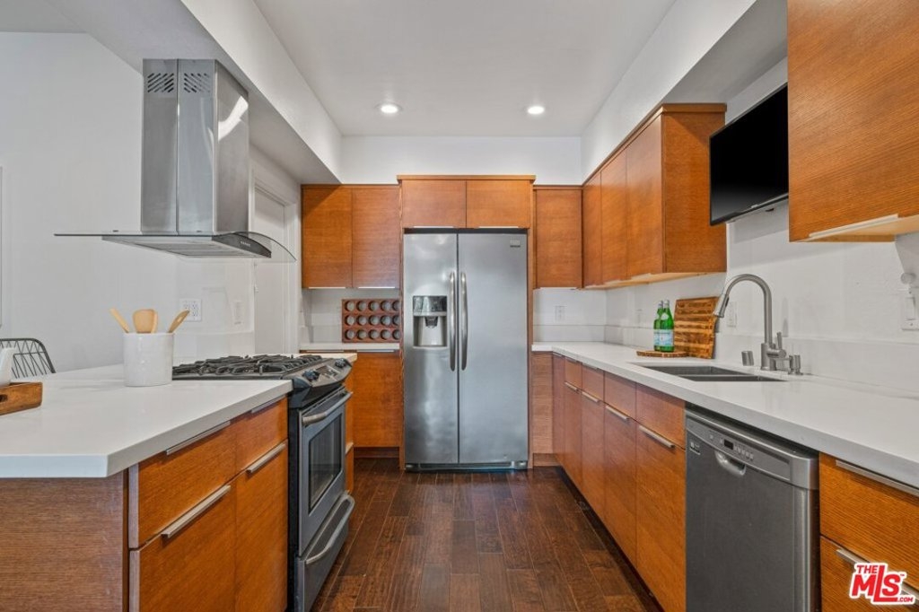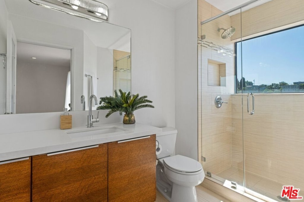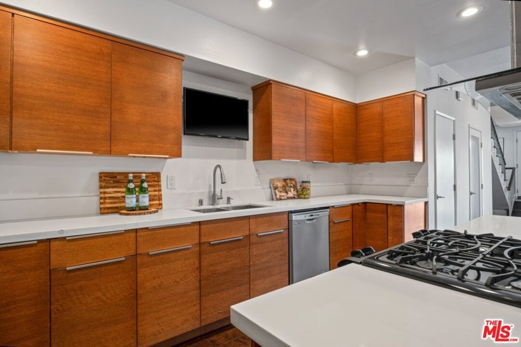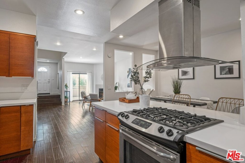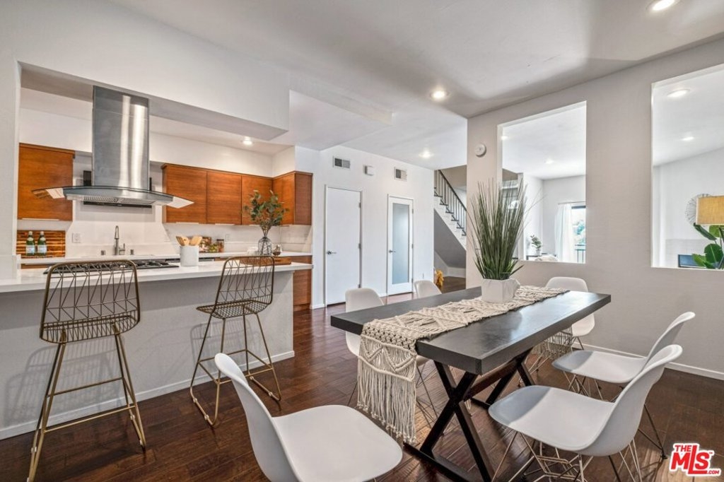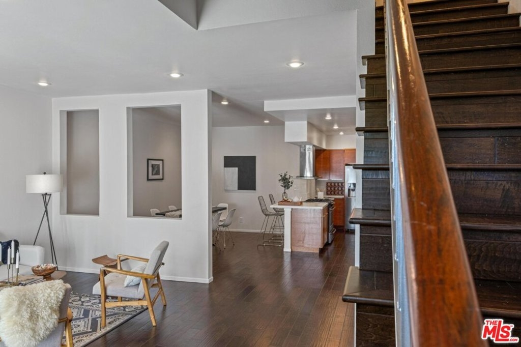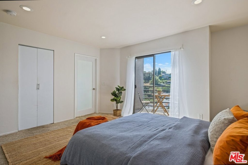 This pristine hilltop Echo Park townhome checks every box! The main level includes an open floor plan, with a living room featuring a cozy fireplace and sliding glass doors leading out to the patio. The large dining area is just off the kitchen, which features bar seating, a walk-in pantry, stainless steel appliances, and gorgeous wood cabinetry. A powder room and extra storage closet complete the first floor. The 2nd floor includes direct access to the garage and a bedroom with unobstructed views of Downtown LA from the private balcony. The top level includes a separate private entry, 2 full bathrooms, 2 bedrooms, and an office/study area. Enjoy incredible city views from both the bright master bedroom as well as from the master shower! Rounding out this ideal home are central AC, engineeredhardwood floors, it is located in a small gated community, and is steps away from all that Echo Park has to offer.