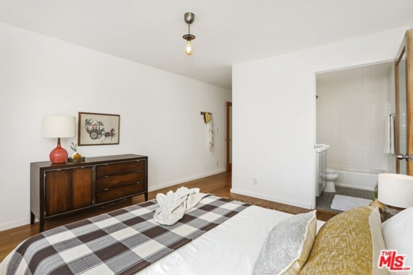 Located in Silverlake's award-winning Ivanhoe Elementary school district, this spacious 3 bed/2 bath modern condo is a rare find. One of just 6 units, unit #103 is conveniently located on the ground floor in the back of the building. The open floor plan flows seamlessly from the large kitchen/dining area to the spacious living room. Sliding glass doors to a private balcony provide abundant light. The large master bedroom with an en-suite bathroom is separated from the other two bedrooms to provide more privacy. The indoor laundry area is appropriately located off the kitchen. The building provides gated entrances, 2 tandem parking spaces, extra storage and an exercise room. This prime location is ideal: close to many bars, shops, and restaurants on Rowena and mere minutes to 365, the reservoir and more.