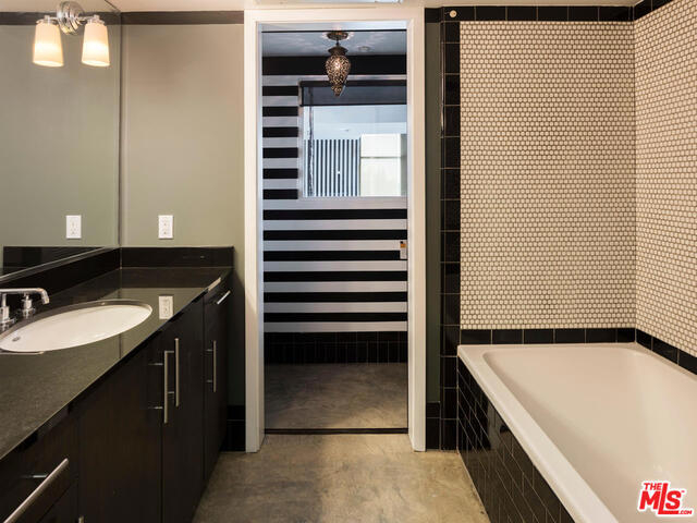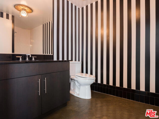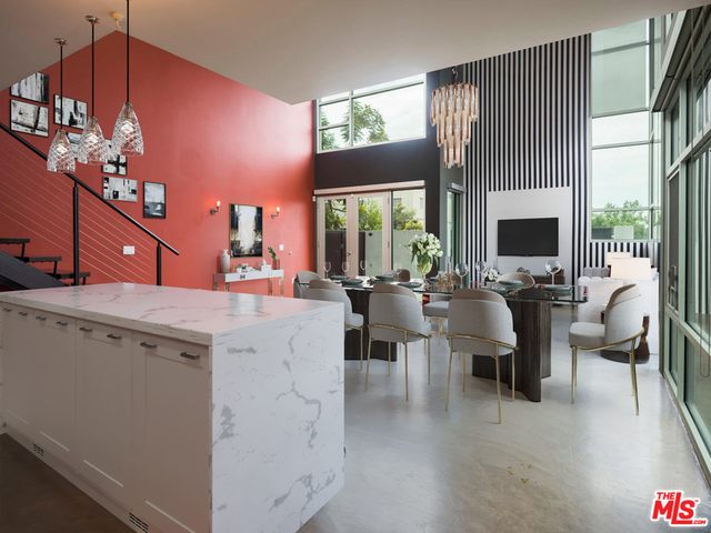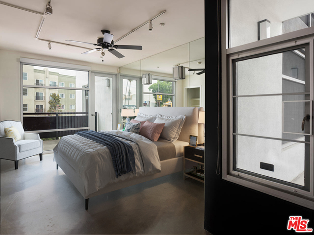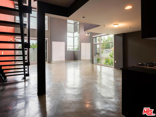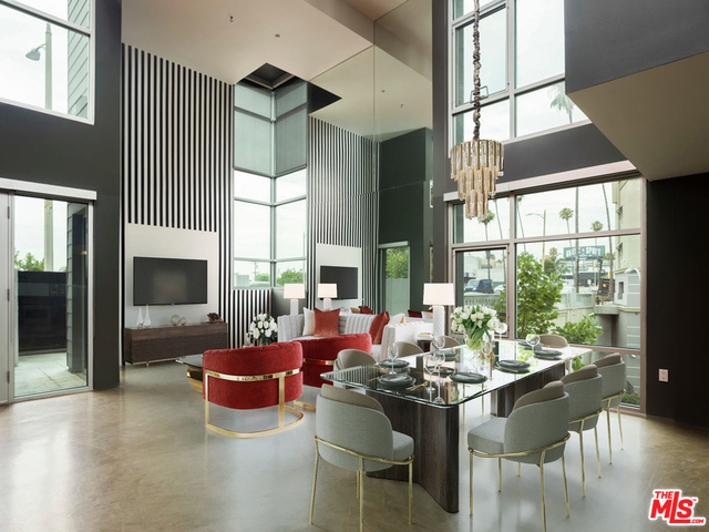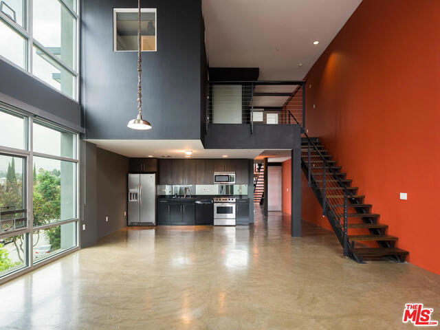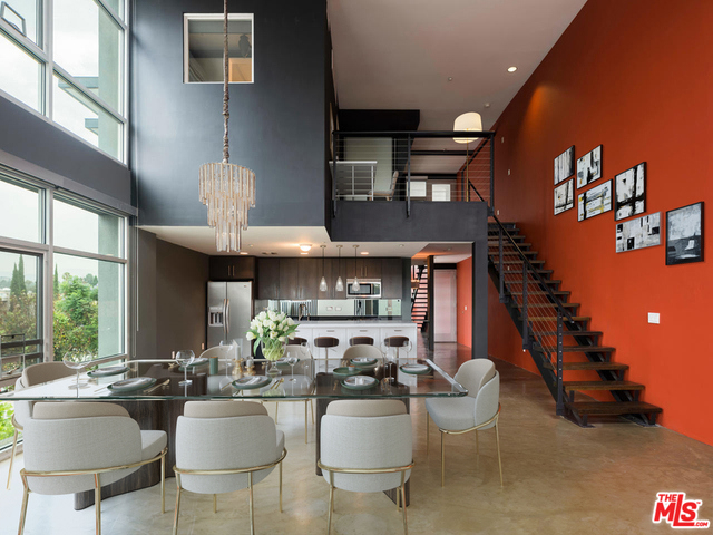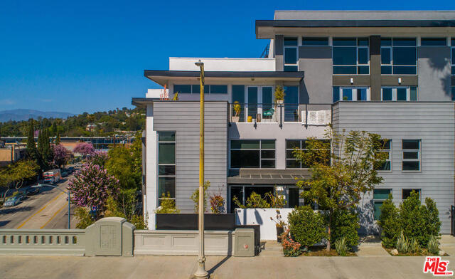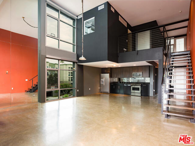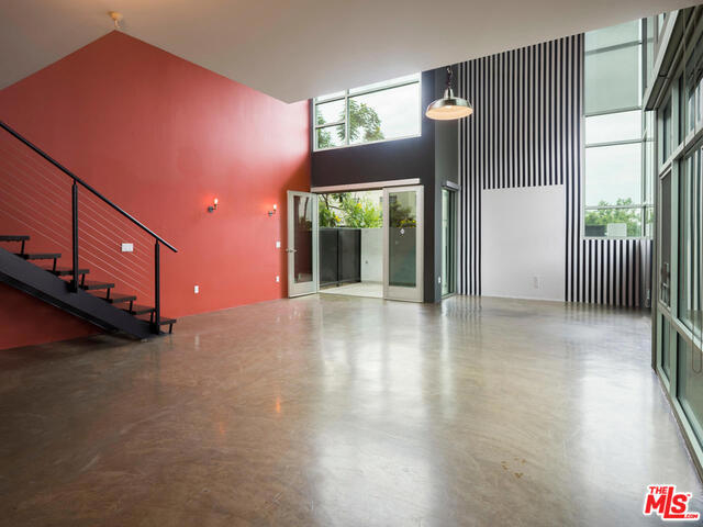 Premium Lux Industrial Loft located in the heart of Sunset Junction. Dramatic design by Rothenberg Sawasy Architects blends high style finishes with modern edged materials. Striking corner unit featuring double height windows bathing the interiors with natural light. Polished concrete floors create a foundation for a floating wood plank staircase leading to an open loft. The main level offers an oversized living & dining area open to the kitchen equipped with stainless steel appliances, quartz counters & mirrored backsplash. A double door front patio provides seamless flow for indoor/outdoor living. The lower bedroom includes a wall of glass leading to a private balcony & a bath with quartz counters & tiled shower. The upper level loft leads to a full bath featuring subway & mosaic tile surround. Sliding screens lead to the oversized, light filled Master w/private balcony & city lights view. Laundry closet in unit. 2 parking spots. Centrally located.