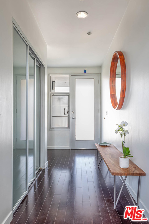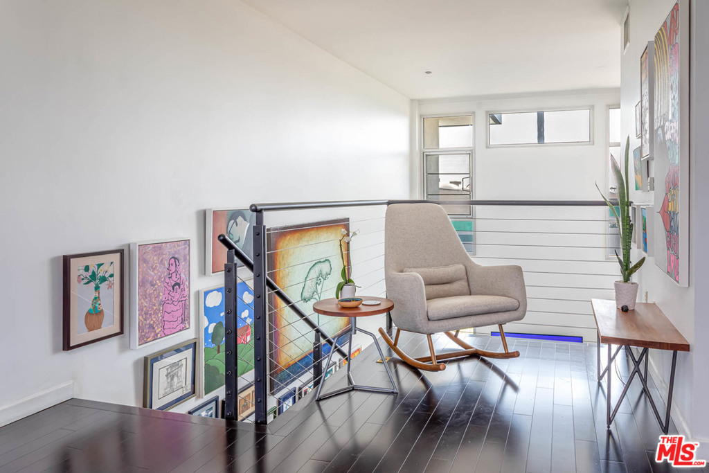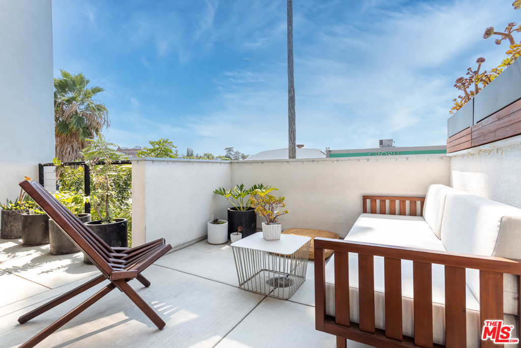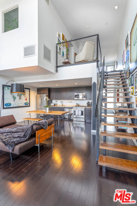 Located on the top floor of a distinctive building in Sunset Junction, this sophisticated loft offers beautiful views of the Hollywood Hills and easy access to many options for shopping, dining and nightlife. Prime location in Silver Lake nearby the new Erewhon Market, private parking, secure access and a spacious, light-filled interior with modern fixtures and finishes, this loft is a perfect investment or residence. The Rothenberg Sawasy designed building boasts a refined industrial aesthetic, a bespoke gourmet kitchen with sleek, European-style cabinetry and beautiful, low-maintenance flooring. Two-story ceilings, many large windows, glass doors, a private terrace for grilling/sunbathing and roof-top view deck in a idyllic location. Open living area/dining room, the kitchen is equipped with high-end appliances, incl a gas range. Peaceful area views provide a backdrop for the spacious, upper level master suite, with custom cabinets, designer fixtures and glass encased shower and tub.