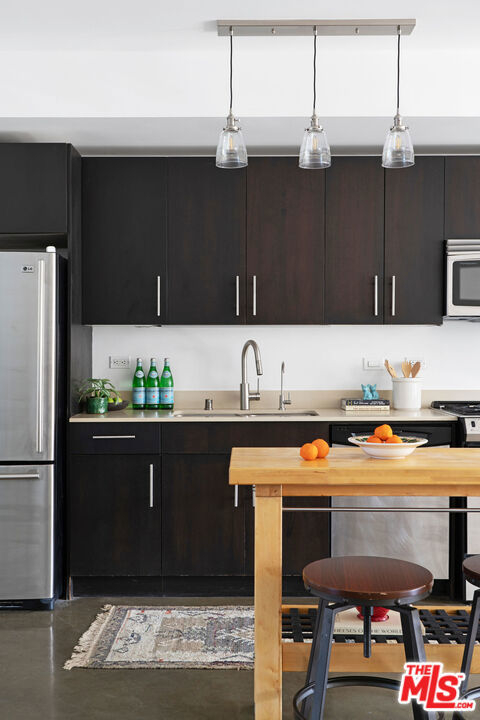 Sophisticated and modern, this one bedroom loft is a live/work haven in the heart of Silver Lake. This is one of a kind with multi-floor living, high ceilings, cement floors, wall to ceiling glass windows and doors, and extensive outdoor living spaces. Enter through the front door to find a spacious and open, entire floor of loft style living. Multiple areas are naturally divisible for relaxing, dining, or even working from home and all surrounding an impressive chef's kitchen. Featuring stainless steel appliances, quartz countertops, dark wood cabinets, and island - this is an entertainer's paradise. A large balcony overlooking lush greenery, a half bath, and in unit laundry complete this level. A grand staircase takes you to the lower floor where you'll find the bedroom retreat. Complete with attached full bathroom, ample storage, and glass doors opening to a private and oversized patio - perfect for hosting dinner parties, hanging out with friends, or even planting your very own urban farm. Also includes 2 parking spaces, EV charger and EQ Insurance. Moments from all that Sunset Junction has to offer: Tartine, Cafe Stella, Intelligentsia, Black Cat, El Cid and so much more.