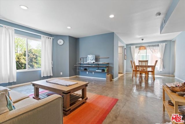 This is a beautiful Echo Park End unit townhouse which is filled with natural light and features a great floor plan with hip modern concrete finished floors, and recessed lighting. The half bath is conveniently located downstairs, while both bedrooms upstairs have their own full bathroom. There are plenty of closets, including a walk-in, and laundry is located in the garage. The unit has a private 2-car garage with direct access. The cozy 12-unit building is located in a secure area with easy access to Hollywood, Downtown LA, and Dodgers Stadium. It is also in close proximity to multiple freeways, making it an ideal place to call home for anyone looking for a convenient and comfortable lifestyle.