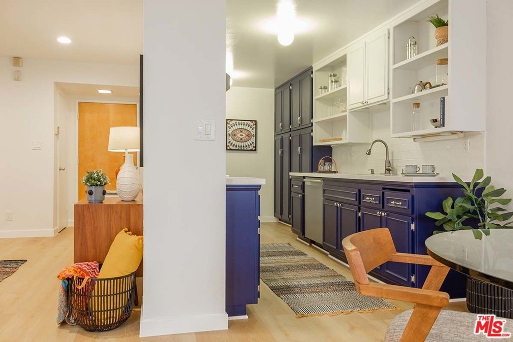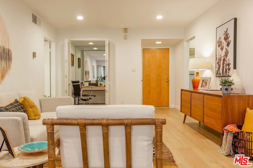Here's an amazing opportunity to become a homeowner in Silver Lake's Ivanhoe Elementary school district. This spacious one-bedroom end-unit on the ground floor has just been redone from top to bottom including recessed lights and eco friendly flooring. Its thoughtful floor plan includes a kitchen with custom wood cabinetry and dining area that flows past the fireplace and into the living room that opens to your outdoor patio. The sunny and bright bedroom boasts a large closet and easy access to the generous full bath. Lastly, you'll find plenty of closet space/storage areas that you can use to best suit your needs. This gated complex offers amenities that include a pool, sauna, gym and your own secured garage parking spot. Found in the heart of Silver Lake enjoy easy access to shopping, dining and a mere few blocks from Blair's, Broome Street General Store, Edendale and the Reservoir.