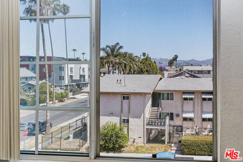 Located in a highly desirable quiet neighborhood in Hancock Park adjacent, walking distance from grocery market, restaurants and shopping malls. Top floor units, The Perfect layout features spacious living room with a cozy fireplace, dining area next to the large windows fills with natural light and fantastic views, convenient inside laundry room,The spacious master bedroom opens up to a large balcony that provides an ideal space for entertaining and watching the Hollywood signs and mountain views, walk-in closets. Central A/C. Community amenities include two tandem gated parking spaces with cabinet storage, gym and beautiful courtyard. Great for investors as well as buyers to fix, remodel and customize the unit according to their standards and taste.