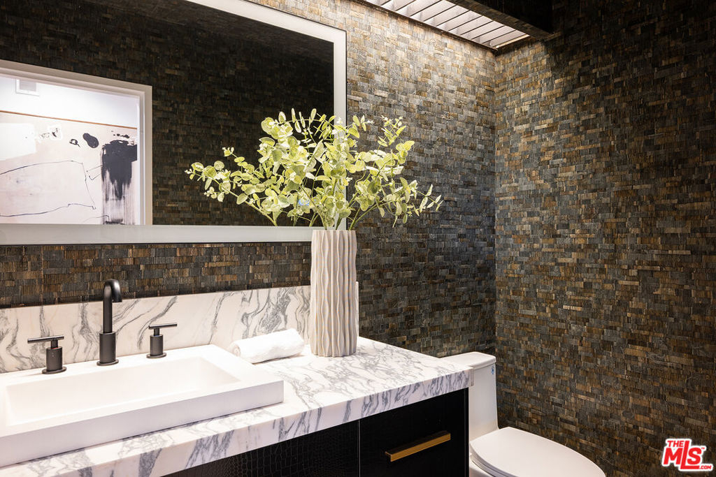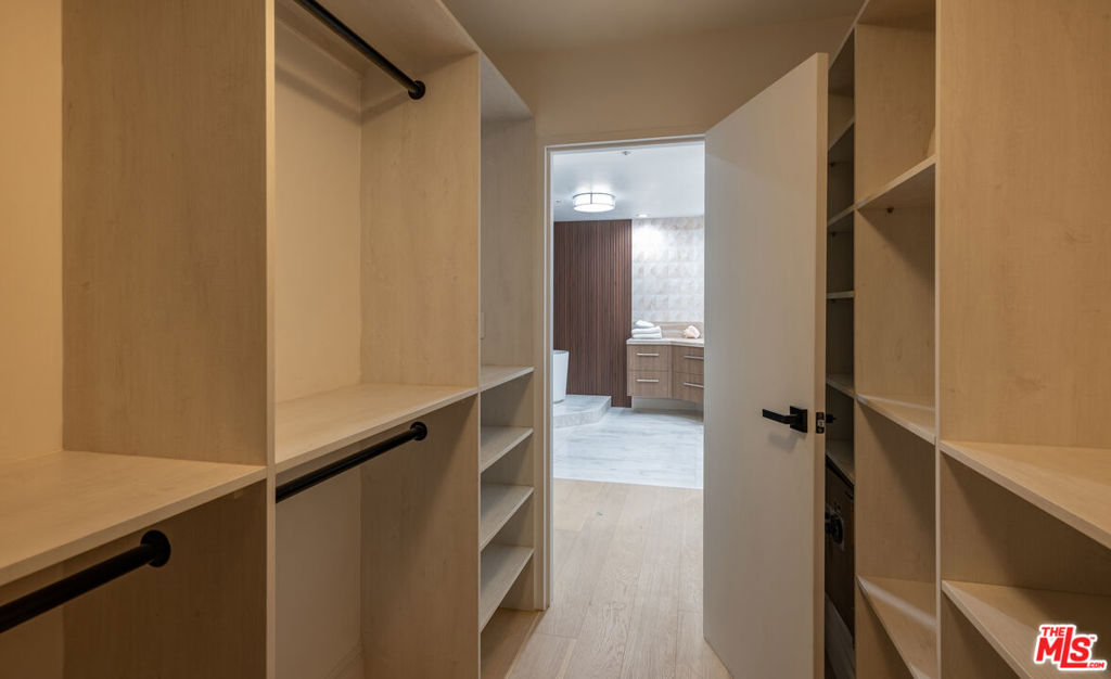 High above the Wilshire Corridor, on a northeast corner within the Mirabella, this expansive residence spans more than 2,800SF and unfolds like a private gallery in the sky. The entry foyer creates an elegant introduction, as the home opens to sweeping 180-degree views across Little Holmby and the sparkling city lights beyond. Wall-to-ceiling glass lines every room, drawing in natural light and extending the interiors outward to two balconies each tiled in reclaimed wood porcelain and accessible from every principal space. High ceilings and recessed lighting heighten the sense of volume, while newly finished, contemporary white oak hardwood floors run continuously throughout.The great room is arranged with intention, offering two distinct seating environments: a formal conversation area anchored by a fireplace and porcelain travertine accents, and a relaxed lounge oriented toward the view. A wet bar with seating supports effortless entertaining, while green and black built-in cabinetry wrapped in designer wallpaper provide curated storage. The kitchen balances function and finish with custom cabinetry featuring honed porcelain countertops and a full Viking appliance package with Sub-Zero refrigerator and Sharp micro drawer. Adjacent dining space captures the skyline as a daily backdrop.The primary suite incorporates a sitting/office area and custom closets, with an accent wall wrapped in Aztec grass cloth. The luxuriously appointed ensuite showcases marble flooring and fluted marble tile within the shower, a Thassos marble shower floor, toilet-bidet water closet and custom walnut vanity. The guest suite mirrors the level of finish, featuring honed marble and pearl handmade tile, vanity, and porcelain travertine surfaces. Additional amenities include the bespoke powder room, laundry room with brand new LG ventless washer and dryer and upgraded AC vents, a Nest smart thermostat, designer vanity pulls throughout, and LED mirrors in every bath.Residents of the Mirabella enjoy 24-hour concierge and valet, pool and spa, fitness center, EV charging, conference facilities, and recent upgrades to the motor court and common areas. HOA dues of $3,649 per month cover water, sewer, trash, gas, DirectTV, internet, and earthquake insurance. Moments from Homby Park, Beverly Hills, Century City, Westwood Village, and UCLA, the home offers the privacy and proportion of a single-family residence within a full-service high-rise setting.