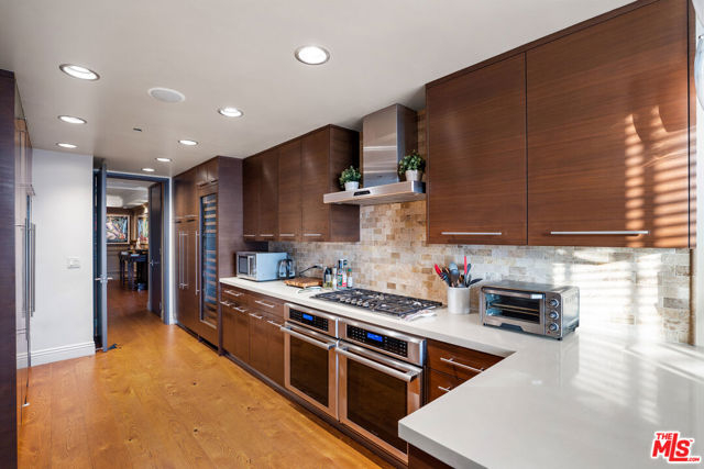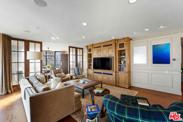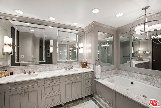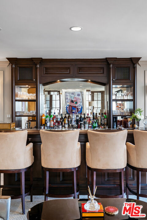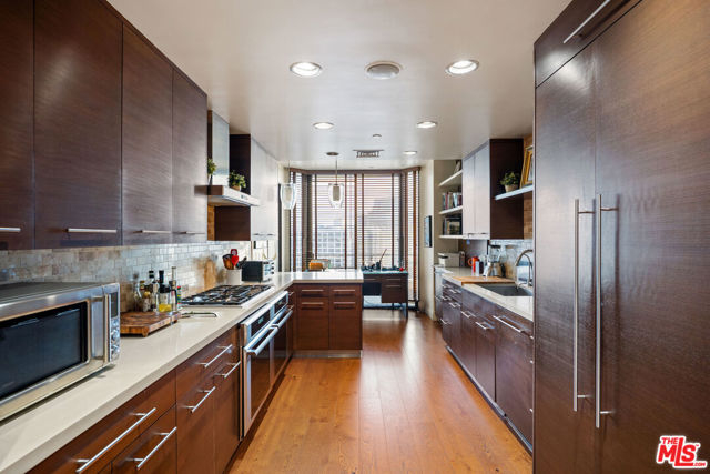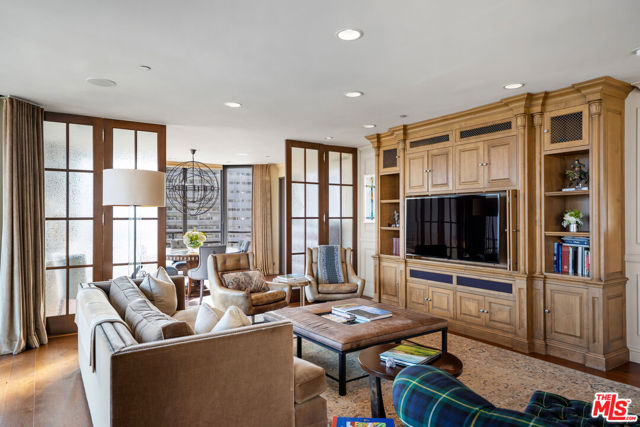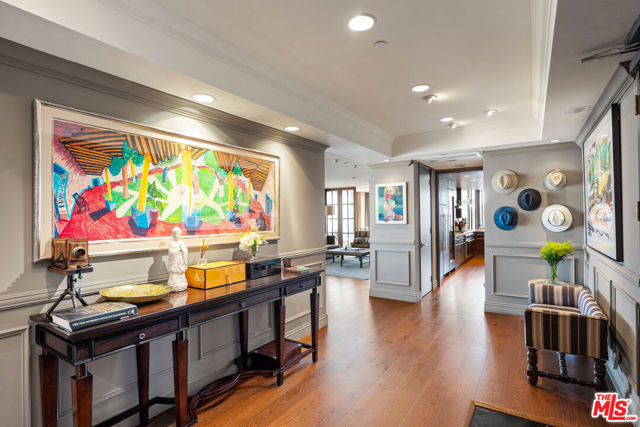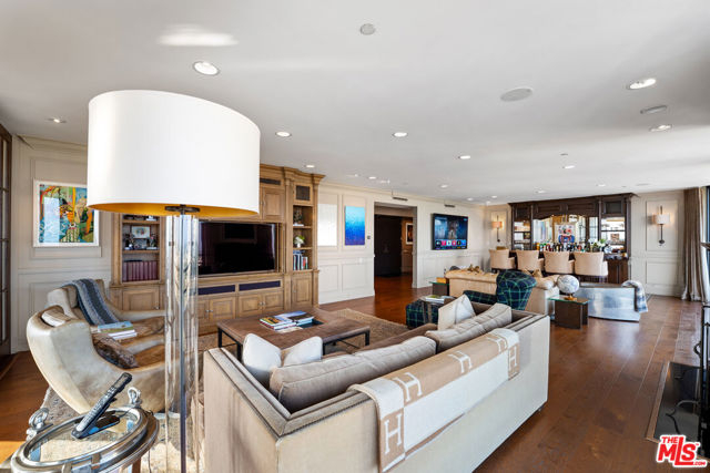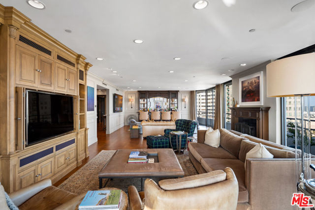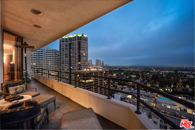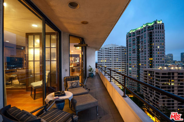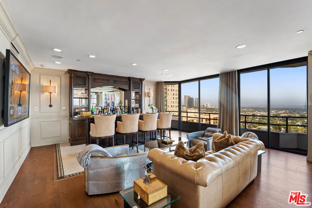 Welcome to one of the most coveted addresses on the Wilshire Corridor, Wilshire House, the only "A" building with wrap-around balconies. This completely remodeled southwest-facing residence showcases spectacular city vistas, ocean views, and Catalina Island on a clear day, all framed by floor-to-ceiling glass and a balcony that spans the length of the condo. Step into a grand marble entry that flows into a sophisticated living space with hardwood floors and abundant natural light, ideal for entertaining. The dining room opens to the stunning views and features a one-of-a-kind custom bar designed for unforgettable gatherings. The kitchen offers new appliances and elegant finishes. The luxurious primary suite boasts two walk-in closets and a marble bath. The second bedroom with its own bath works beautifully as a guest room, den, or home office. Special features include a built-in wine cellar and custom leather floors in the dining room and primary bedroom. Wilshire House Amenities: 24-hour valet & security, In-house engineers for on-demand repairs, lit tennis court, Saline swimming pool, & spa, fire pit & outdoor entertaining area, State-of-the-art fitness center, Recreation/banquet room, library, elegant lobby with a tranquil waterfall feature. No open houses permitted; private tours available by appointment.