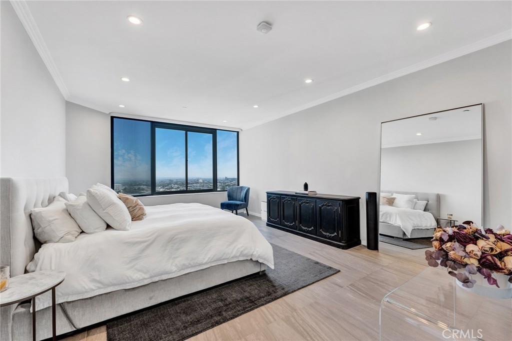 Stunning Remodeled Condo in the Prestigious Park Wilshire! Enjoy resort-style living with one of the BEST OCEAN & CITY VIEWS on The Corridor!! The owner spared no expense tastefully remodeling this modern south facing unit! The bright open floor plan offers a fabulous living room with high ceilings leading to a large balcony! Dining/OFFICE area w/custom built-ins and recess lights throughout the unit! Gourmet center island kitchen w/ top of the line stainless appliances and huge wine frig! Perfect breakfast area w/ built-in Quartz table! Primary suite built for a king/queen! Primary bath offers a huge shower, separate tub, dual sinks with vanity! Enormous walk-in closet with tons of custom built-ins! Convenient remote blinds w/ sheer & blackout! This incredible full service building offers 24/7 concierge, valet parking, pool/spa, gym, library, lounge, banquet room and much more!! Located steps away from dining, shops, theater, UCLA and Westwood Village!!!