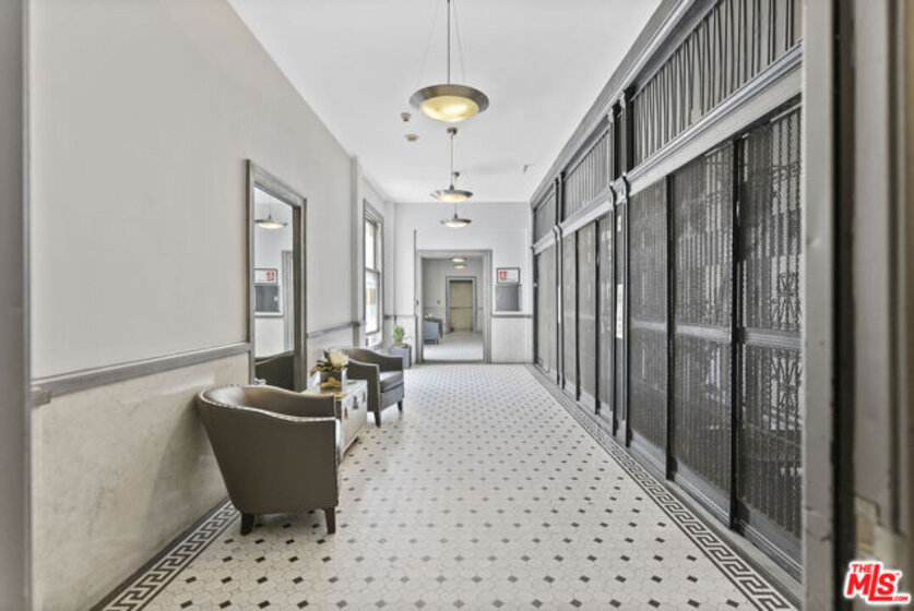 Experience iconic Downtown Los Angeles living in this bright, industrial-style corner loft located in the historic Higgins Building, a registered federal landmark with Mills Act tax benefits - saving owners up to 75% on property taxes. This unique unit offers dual exposure with oversized windows on both the northwest and southwest walls, flooding the space with natural light and showcasing panoramic skyline views and stunning sunsets. Soaring 11-foot ceilings, polished concrete floors, and modern track lighting enhance the open, airy feel. The fully remodeled kitchen features sleek new cabinetry, a designer faucet, premium stainless steel appliances, and Neolith countertops - a high-performance surface favored by luxury designers for its durability and refined aesthetic. The bedroom includes a custom vertical wood slat accent wall and a sliding panel that opens to a spacious walk-in closet, blending architectural elegance with functionality. The updated bathroom features a new vanity, faucet, storage cabinet, and a bidet for added comfort. Enjoy panoramic city views from the rooftop BBQ and dining terrace, ideal for hosting guests or relaxing under the stars. The building offers on-site security for peace of mind and is located just one block from the Metro's brand-new Historic Broadway Station, providing seamless access to multiple transit lines and making commuting across Los Angeles easier than ever. Steps from Little Tokyo, Grand Central Market, Grand Park, Redbird, Blue Bottle Coffee, Badmaash, and the LAPD dog park, this loft places you in the heart of DTLA's vibrant cultural, culinary, and entertainment scene. Easy access to museums, concert halls, and public transportation completes the urban lifestyle. HOA dues include water, trash, sewage, and general liability/fire insurance. Residents are responsible for electricity and internet. Secured parking is available at two nearby garages - one directly adjacent to the building and another just across the street.