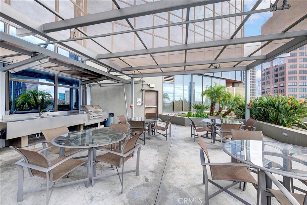 Rare 17th-Floor Live/Work Condo with Private Balcony & Direct Rooftop Access Exceptional 2-story Live/Work residence located on the 17th floor, one of only nine units in the building offering a private balcony and direct access to the rooftop pool and sky deck. This 2-bedroom, 2-bathroom home features high ceilings, spacious living areas, and panoramic views stretching from the Hollywood Hills to Dodger Stadium and the Downtown LA skyline. Enjoy approximately 500 sq. ft. of private outdoor space with unobstructed city views—ideal for entertaining or relaxing. Both bedrooms include en-suite bathrooms, providing comfort and convenience for residents, guests, or work-from-home use. Additional building features include: • Two reserved parking spaces with EV charging access • Extended guest parking • Gym, Business Center, & Multimedia Theater Room • On-site storage rentals • Amazon package lockers • 24-hour concierge and security The 17th-floor Sky Deck offers resort-style amenities including a pool, spa, cabanas, lounge seating, wet bar, and BBQ area. A rare opportunity to own one of the building’s most desirable and uniquely positioned units in the heart of Downtown Los Angeles.