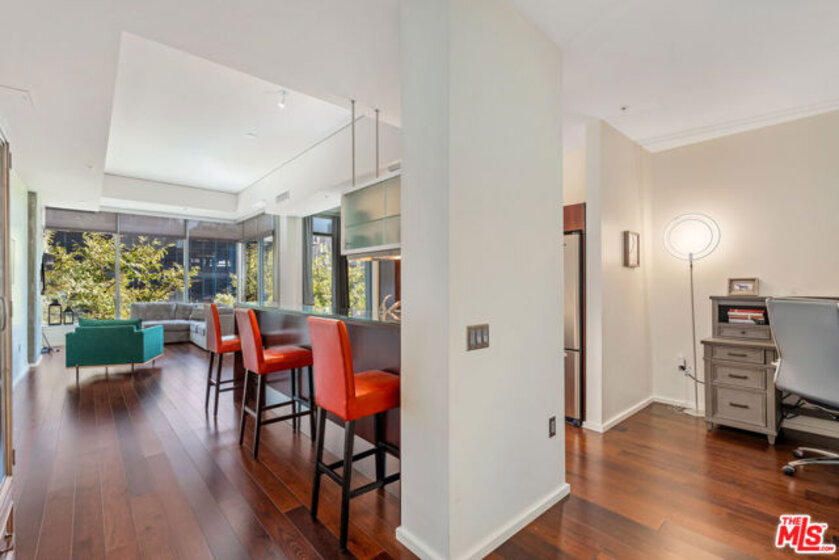 Step into one of EVO's most desirable layouts a sun-filled, east-facing 1-bedroom, 1-bath loft featuring uniquely high ceilings for this floorplan and floor, elegant dark floors, and exposed concrete columns. A versatile nook is perfect for dining or a home office, while the modern kitchen and long entryway lead seamlessly to the living area, full bathroom with tub/shower, and a separate storage room with stacked washer and dryer. Resort-style amenities make everyday living extraordinary: heated pool, spa, rooftop lounge with terrace and fireplace, outdoor dining areas, and a fully equipped top-floor gym with sweeping city views. Residents enjoy 24-hour front desk service, controlled access, gated assigned parking, and on-site management. Located in the heart of the South Park BID, just steps from Crypto.com Arena, LA Live, the South Park Farmers' Market, Whole Foods, Ralphs, Expo Line, restaurants, and entertainment. With a Walk Score of 94, this loft offers the ultimate Downtown LA lifestyle.