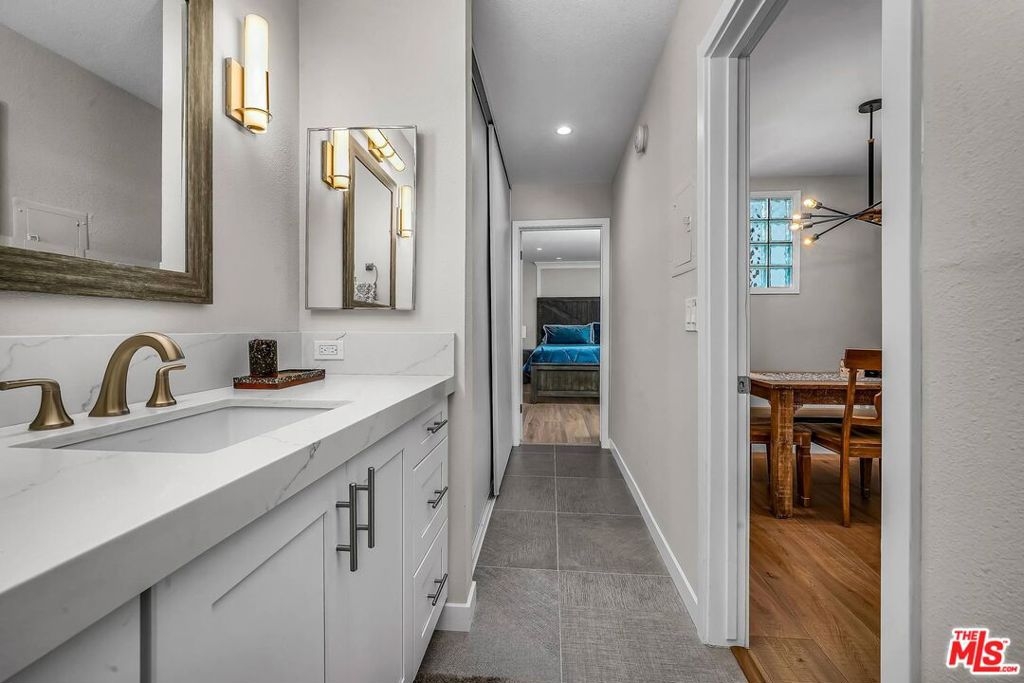 Show with confidence. This is a great unit and a terrific value! Bright and recently remodeled throughout, this beautiful single level condo residence is the one you have been waiting for! One bedroom plus den/office area. Open floorplan with kitchen which opens to large dining area and living room. The living room features a gas fireplace, bar with wine & beverage refrigerator, and sliding doors that open to a patio and greenery. Complex amenities include resort like pool and spa, saunas, controlled access lobby and parking and earthquake insurance. Two car tandem parking. Ideally located in the heart of Brentwood, close to fine shops, restaurants and park. Currently staged but listing photos are from when the property was previously staged.