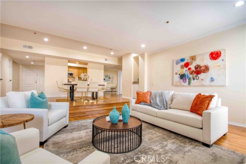 Exceptional value in coveted Brentwood! Bright and open-concept residence featuring a sunken living room with fireplace, hardwood floors throughout, and floor-to-ceiling windows that fill the space with natural light. Split-bedroom layout offers two oversized suites, each with en suite bath and walk-in closet. Two versatile bonus rooms perfect for home office, gym, or den. Kitchen with granite counters and stainless steel appliances, plus in-unit laundry and secure 2-car tandem parking. Prime Brentwood location—steps to shopping, dining, grocery, and freeway access. Luxury square footage at an accessible price—don’t miss this opportunity!
