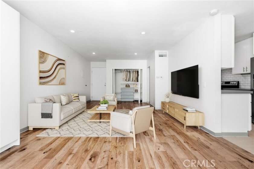 Beautifully renovated corner-unit condo, ideally located in Hollywood at the base of Runyon Canyon, offering convenient access to some of the area’s best hiking, dining, and entertainment. This thoughtfully updated home has been completely renovated from top to bottom, featuring new flooring, cabinetry, fixtures, kitchen and bath upgrades, window coverings, views of the sparkling pool, and a new dual washer/dryer for ultimate convenience. The modern kitchen features stainless steel appliances, sleek cabinetry, and under-cabinet LED lighting, creating a clean, contemporary feel. Hardwood floors with cork underlayment add warmth and comfort, while recessed lighting and plantation shutters enhance the bright and inviting living space. The updated bathroom features a beautifully tiled shower with a glass enclosure and stylish finishes throughout. Within the community, enjoy a private outdoor patio which provides a peaceful spot to relax and enjoy Southern California’s year-round sunshine. Additional highlights include secure tandem parking in the garage and access to excellent building amenities, including two fitness centers, two saunas, and a brand-new pool and spa currently under construction. Projected to be completed by May of this year! This move-in-ready condo is a wonderful opportunity to own a stylish and updated home in one of Los Angeles’ most sought-after neighborhoods. Schedule a private showing to come see today.