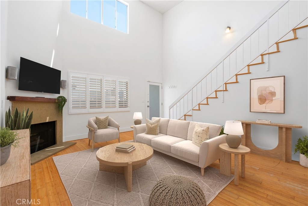 Welcome to West LA! This top floor, townhome-style 1bd/1ba + closeted loft condo, sits in a cozy, 10-unit building close to everything! Featuring: Lots of natural light for a bright, upbeat vibe; Upstairs loft w/closet for a bedroom, gym, office, etc, with access to the private, sun-drenched terrace (this is an awesome spot); Living Room with soaring ceilings & spacious feel; Large Master Bedroom w/dual-paned windows & plantation shutters; Kitchen with stainless steel appliances, great counter space, eating area & pantry/storage; Shower-in-tub with subway tile in the previously renovated bathroom; In-unit washer & dryer in their own "hidden" nook; bamboo flooring (redo to your taste or enjoy its current, shabby-chic feel); Gated tandem parking for 2 cars; Low HOA dues. Open your front door and see the sunshine, not a stuffy hallway. EXCELLENT LOCATION: Close to LA's Westside, Century City Mall, West Hollywood, Beverly Hills, restaurants, clubs, museums, shops & entertainment. This building is SB326 compliant! See the virtually staged pictures for decor ideas and schedule a showing!