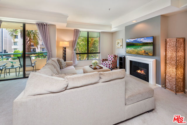 Amazing price for this beautifully maintained front-facing Corner condominium featuring 2 bedrooms and 2.5 bathrooms with many distinctive custom-built details located in a prestigious, well-kept complex in the heart of Westwood. This inviting residence boasts a gracious layout with a spacious living and dining area, complete with coffered ceilings, a wet bar, fireplace, and a front-facing balcony offering tranquil treetop views perfect for enjoying the outdoors. The thoughtfully designed floor plan features a central hallway and two generously sized bedrooms, each with its own en-suite bathroom. A convenient side-by-side laundry area is also included. The large kitchen offers granite countertops, ample cabinetry, double oven, cooktop, microwave, and dishwasher ideal for home cooking and entertaining. The expansive primary suite features a fireplace, walk-in closet, dual vanity, and separate shower. Additional highlights include crown molding, abundant closet space, fully tiled bathrooms and kitchen for easy maintenance, and two-car gated parking with few guest spaces. Situated within the desirable Westwood Charter School District, this well-managed building with HOA which includes earthquake insurance. Prime Westwood location, just minutes from Century City Mall, UCLA, Holmby Hills, Beverly Hills, Rancho Park, Brentwood, and Santa Monica. Easy access to premier shopping, dining, and major freeways (10 & 405) makes this a truly exceptional offering.