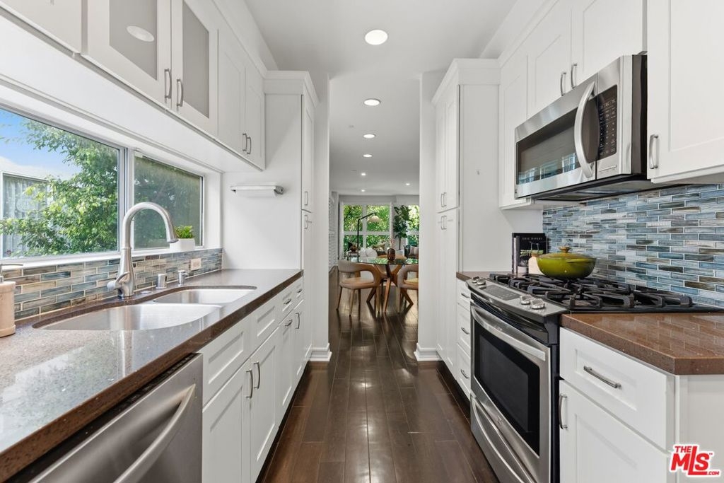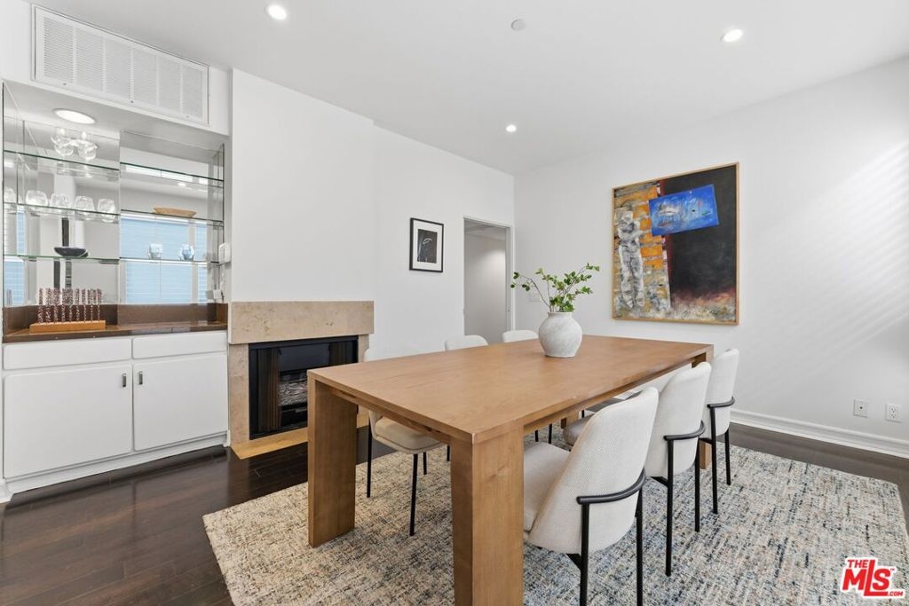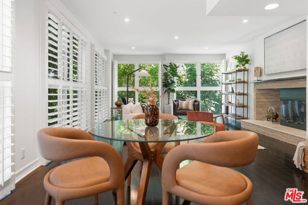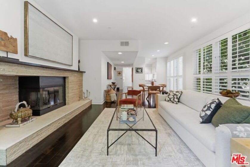 Nestled in a prime & central location, this one story 2-bedroom, 2-bathroom condo effortlessly combines modern updates with a sense of tranquility. Floor-to-ceiling windows frame the living room, offering treetops views on the east and north sides, bathing the space in soft, filtered light, especially during the morning. It's the perfect space to greet the day and come home to. .The updated kitchen boasts sleek newer cabinets, countertops, and appliances, making it as functional as it is stylish. The formal dining room provides flexible options whether you're hosting dinner parties, setting up a home office, creating a playroom, or carving out a family TV room. The primary bedroom is a true retreat, complete with a cozy fireplace, a generous walk-in closet, and plenty of room for a sitting area or desk. The ensuite bathroom features a new soaking tub, separate glass enclosed shower and duel vanity sinks. The 2nd bedroom also features lots of storage space. Both bedroom closets are designed with the Elfa modular system maximizing both space and storage. The second bathroom is full-sized, ideal for guests or family use. Conveniently located just off Westwood Boulevard and around the corner from the ever-popular House of Bread! Close to UCLA, Century City, and with easy access to the 10 freeway, this condo offers unbeatable accessibility to some of the best shopping, dining, and entertainment around. This property is within walking distance of Westwood Charter Elementary School. Move-in ready and newly painted, this home is waiting for you to make it your own!