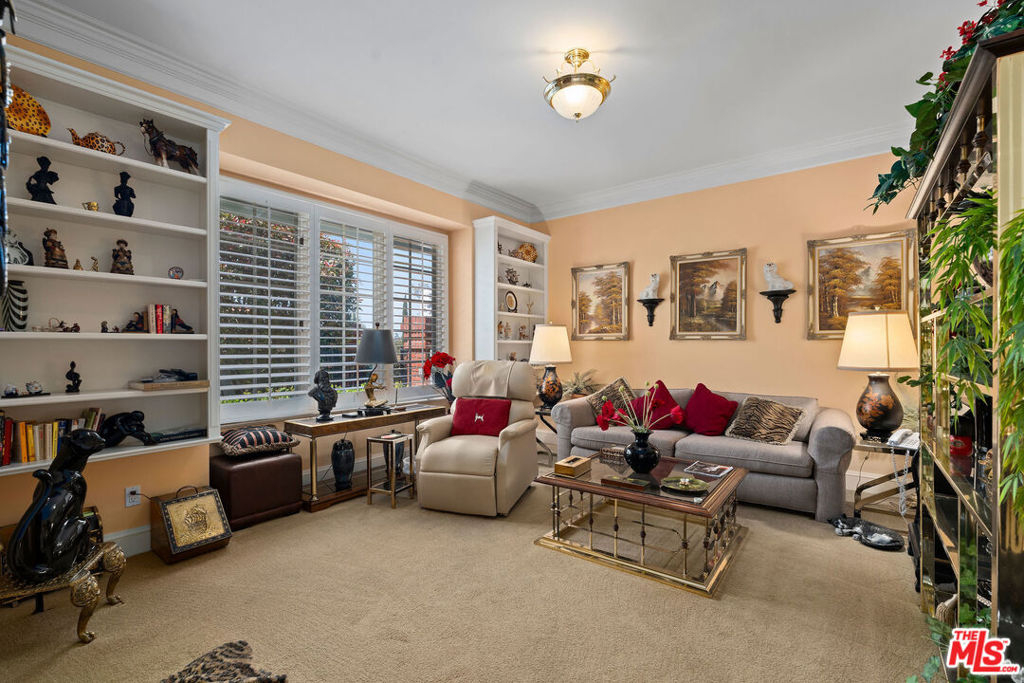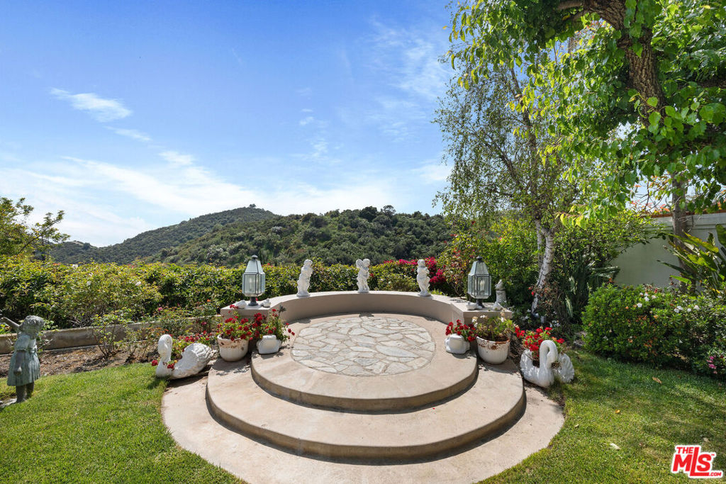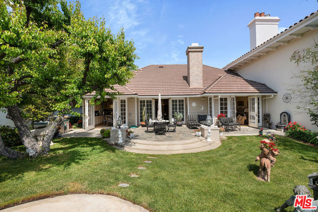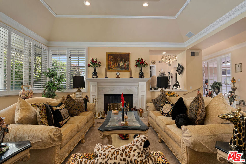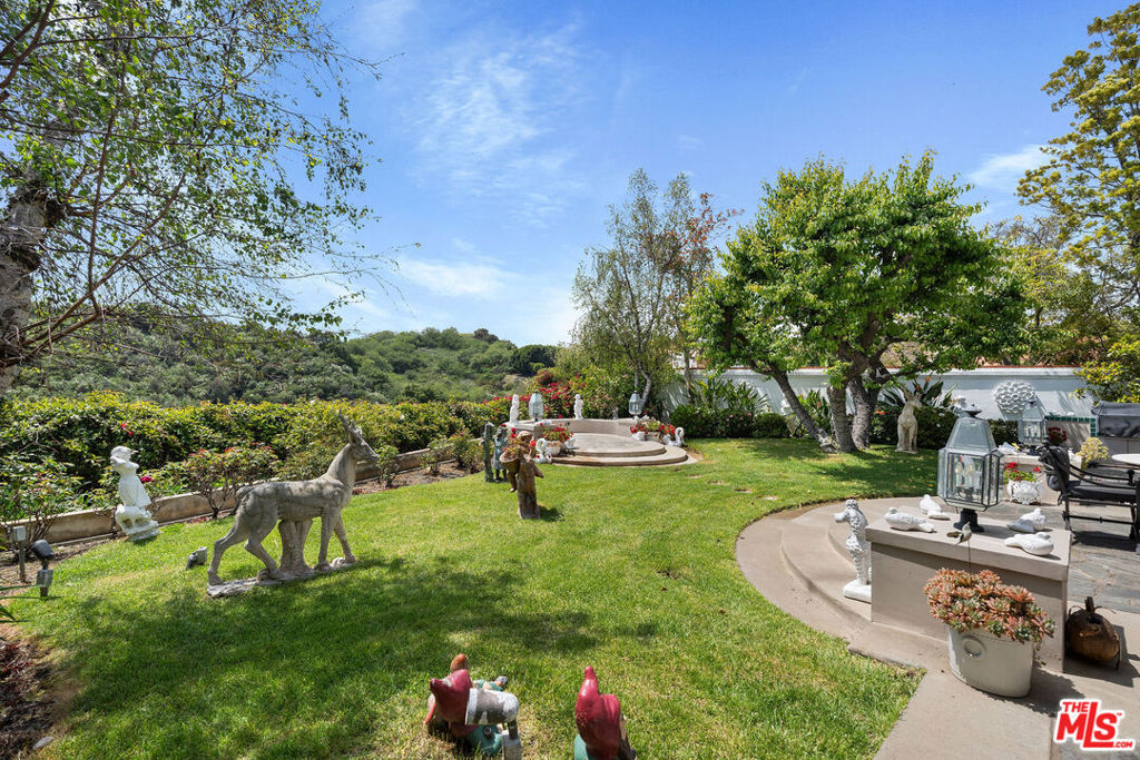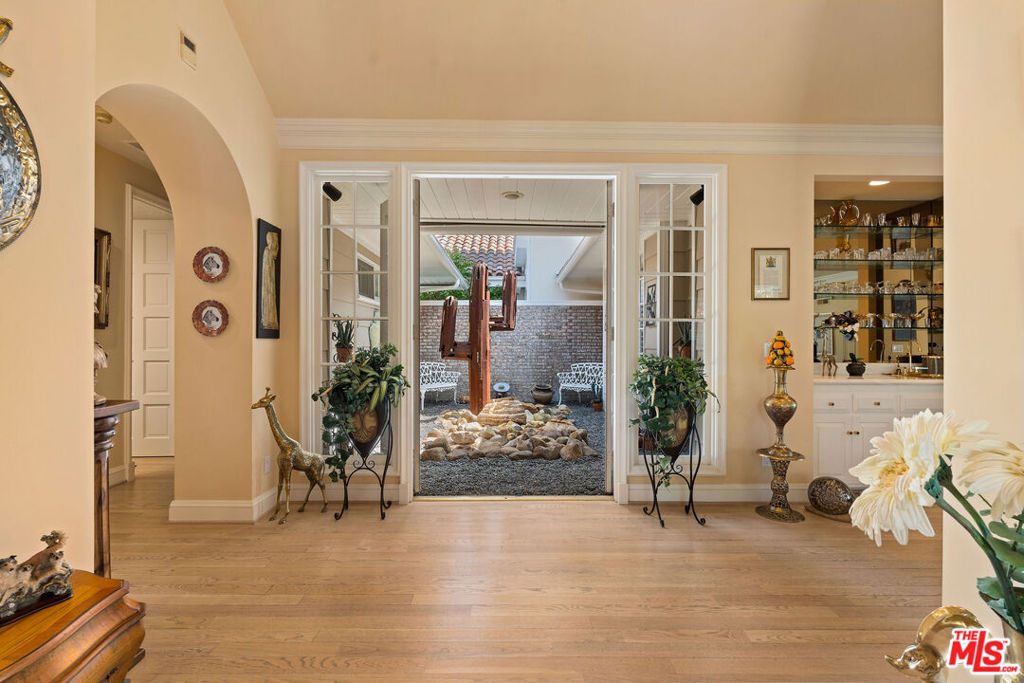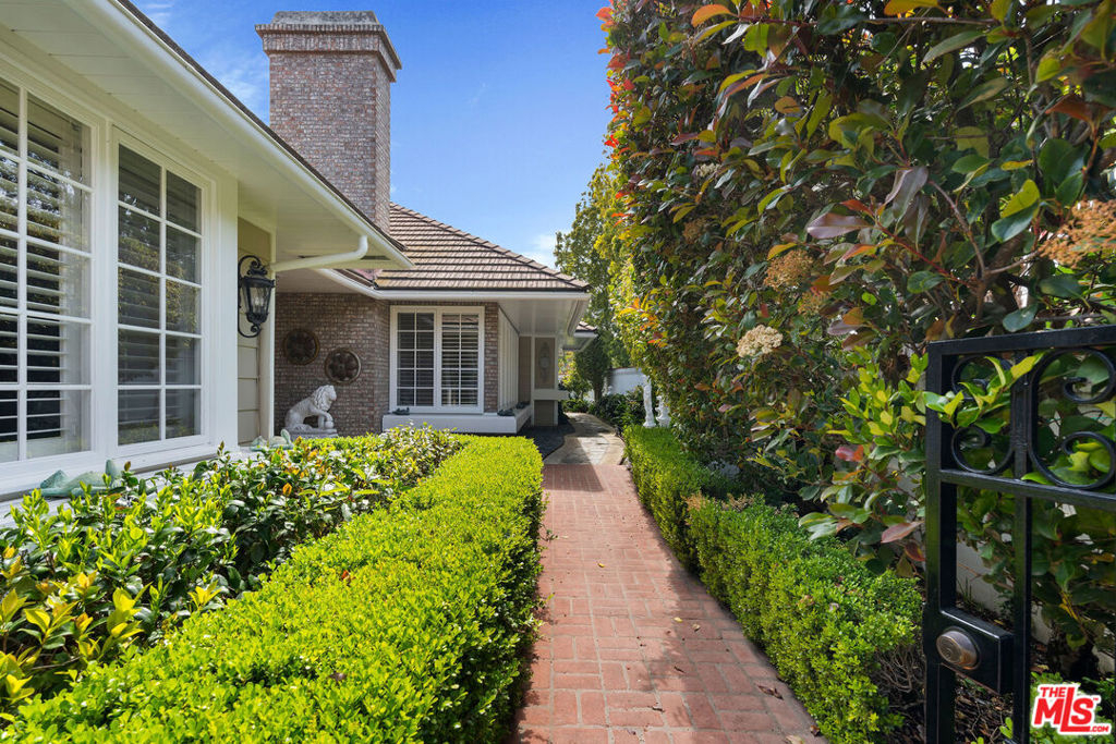 Priced to sell! Fabulous, move in, Located in an enclave of 7 homes at the end with only 1 common exterior wall, Premier Mountaingate rare one-story single family home (only 2 of over 300), gated community with 24/7 security and mountain views. Upon entering this gated home, the foyer has very high ceilings, step down living room & formal dining room w/french doors opening to a private patio & spacious garden with built in barbeque and magnificent canyon views looking westward. A light filled Atrium in the center of the home with a bronze sculpture gives added depth to the entrance.TV friendly book-lined family room with fireplace. Center island bright & sunny kitchen & Breakfast room w/cabinets and french doors leading out to the patio. Special master suite w/fireplace and beautiful sunken marble bath with walk-in shower, bidet and walk-in closet. A guest bedroom, 3/4 bath and sitting room have their own separate entrance from the front. Come and enjoy the Mountaingate lifestyle. Mountaingate. HOA dues include resort-like amenities. Close to all, UCLA,USC, easy 405fwy access & the best of LA. community, 27 hole golf course,pool, spa, tennis courts, pickle ball courts, hiking trails, and 24-hour security patrol. Conveniently located yet seemingly a world away, this idyllic home provides a true sanctuary in one of Brentwood's most desirable neighborhoods. Guest memberships to golf course can be purchased. Excellent restaurant there.