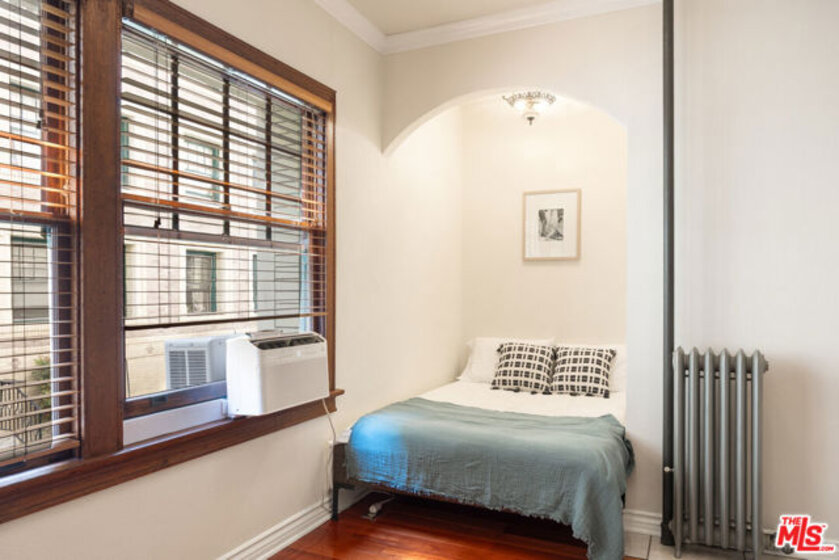 Hey there nostalgia lovers! Welcome to a piece of LA history, an architectural Landmark, the Glen Donald Building. Built in 1923, time travel to old Hollywood glamour. Located west of downtown Los Angeles and close to MacArthur Park in the Westlake district. The turn-key condo is filled with turn of-the-century charm at every corner. Upon stepping into the unit, you are greeted with architectural elements such as an arch in the entryway, redwood floors, crown moldings and mahogany wood doors. Large windows with wood frames. They just don't make 'em like this anymore. A cozy floor plan with a stylish bed alcove. No shortage of storage with 2 oversized walk-in closets with custom shelves and drawers. Facing the interior courtyard, the condo is quiet, bright, airy and efficient. The bathroom is all charm with vintage-style fixtures, a shower and soaking tub. A well equipped kitchen with a gas stove, microwave, fridge and cabinetry. Residents enjoy access to a secured courtyard entrance. Building amenities include a luscious courtyard, grand lobby with plenty of seating and baby grand piano. Downstairs you'll find a recreational room with a lounge area and a ping pong table, a fitness room, community laundry room and bike storage. Langers Deli is a stones throw away. Located within close proximity to USC, Loyola Law School, Downtown L.A, K-Town and the Mid-Wilshire neighborhoods. Surrounded by public transportation, the MacArthur/Westlake Metro station is only 2 blocks away. Near pharmacies, shops, supermarkets ,restaurants, fast food and public parks. The HOA fee includes electric, gas, water and trash. While there is no parking associated with the sale of this condo, there are 2 parking lots nearby. Don't miss this unique opportunity to own a piece of L.A. history.
