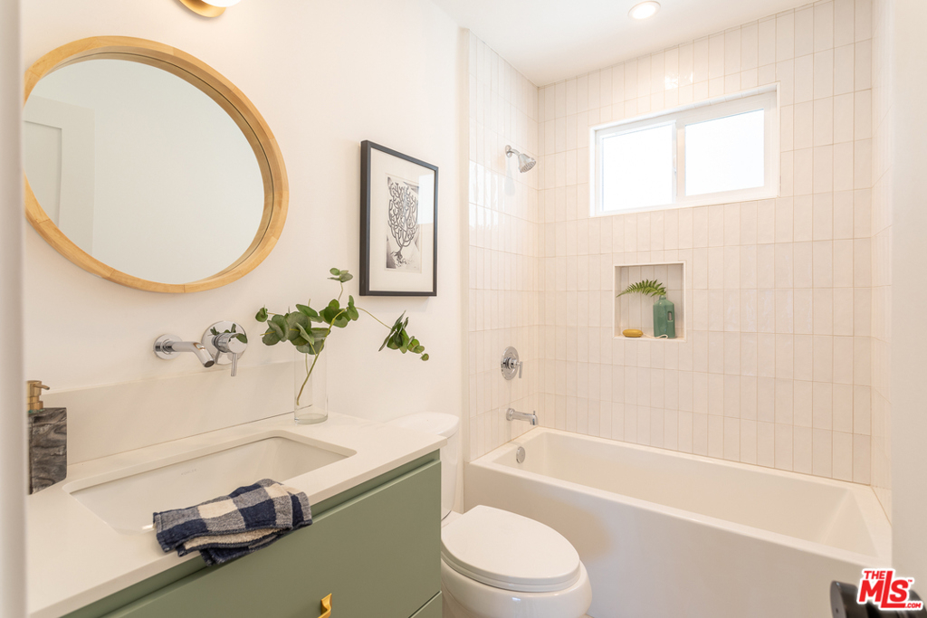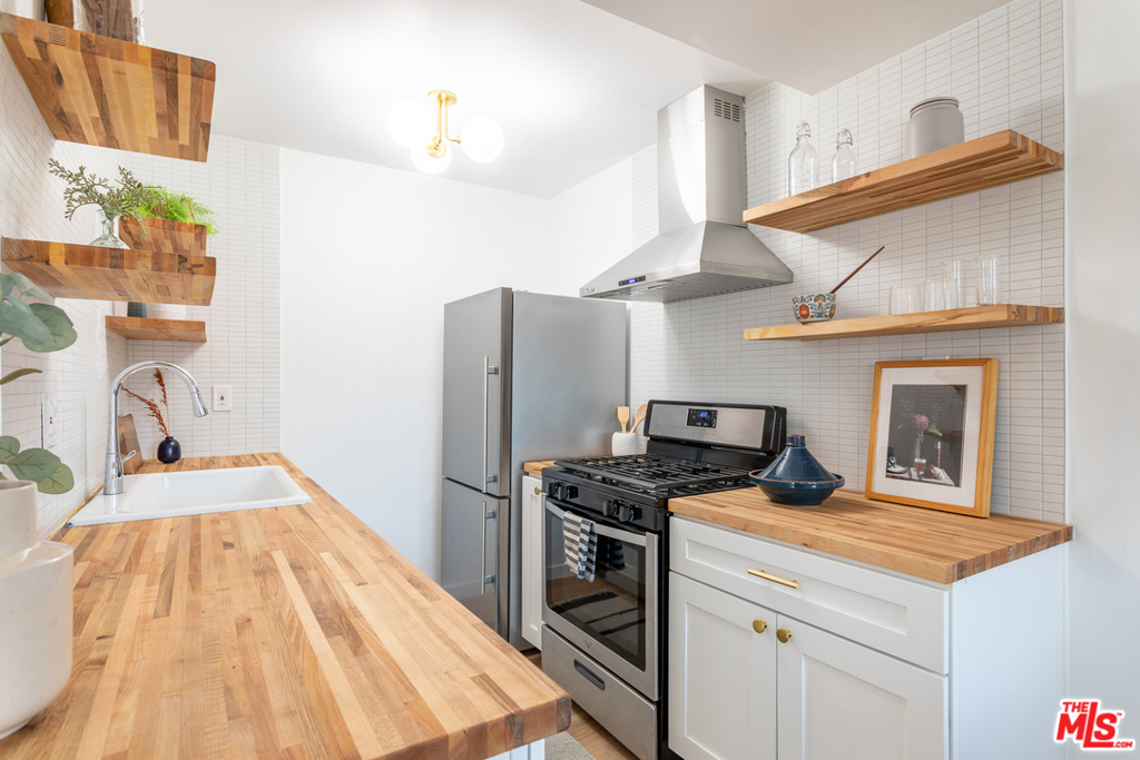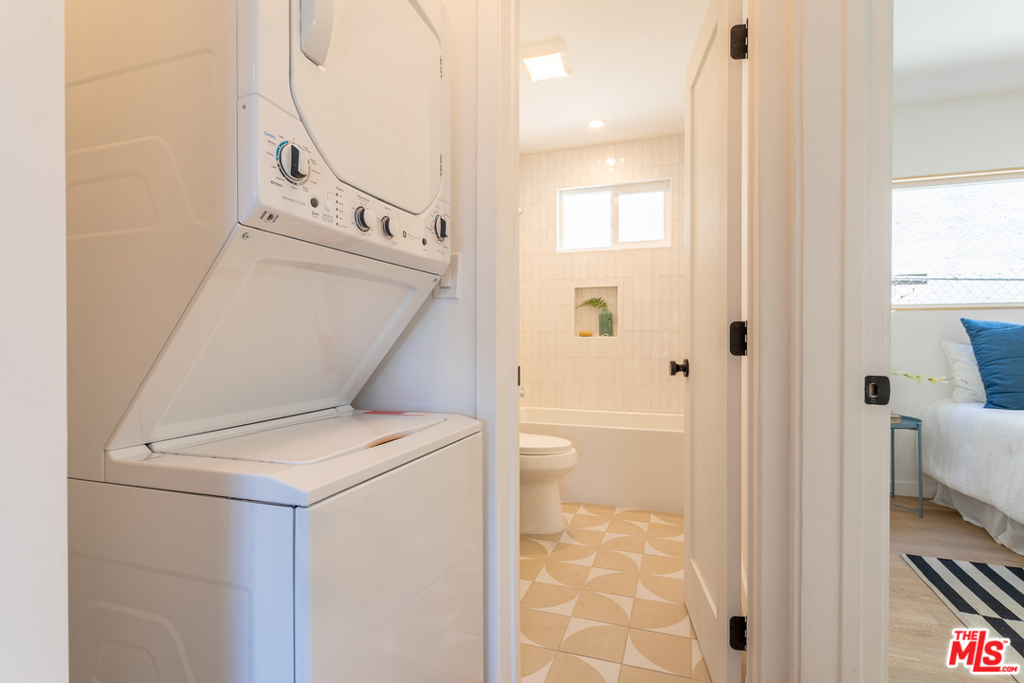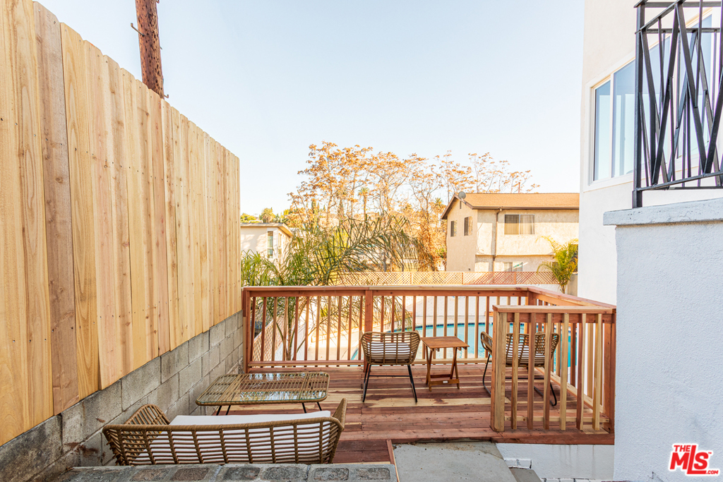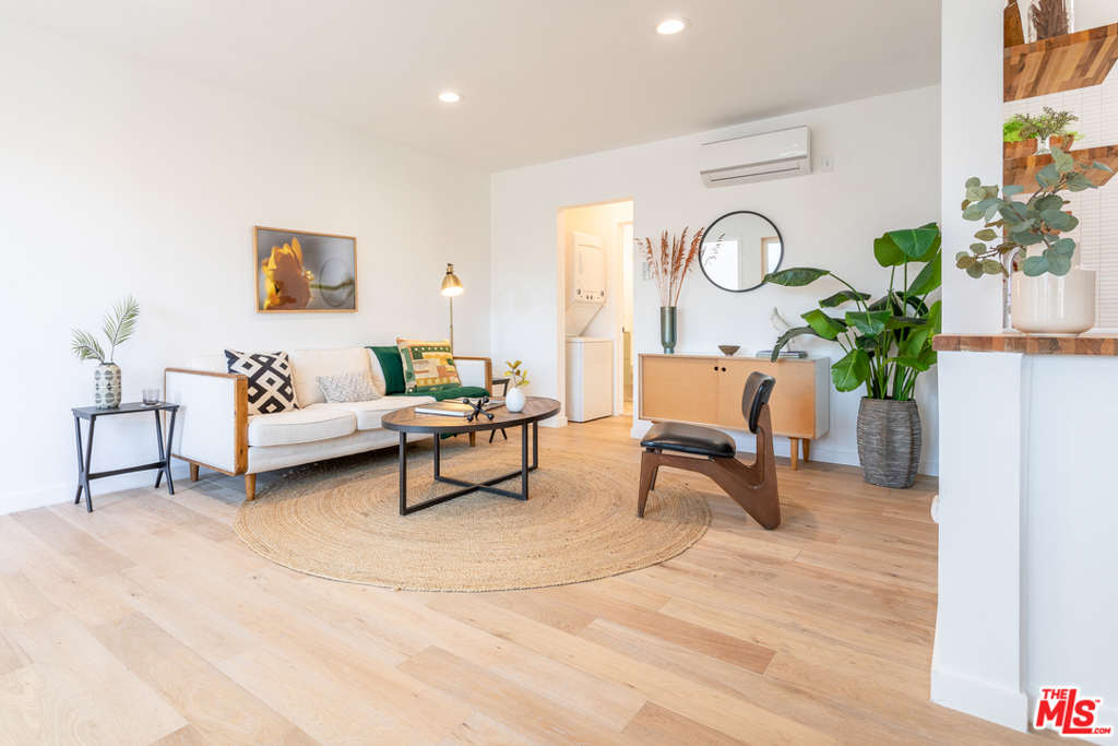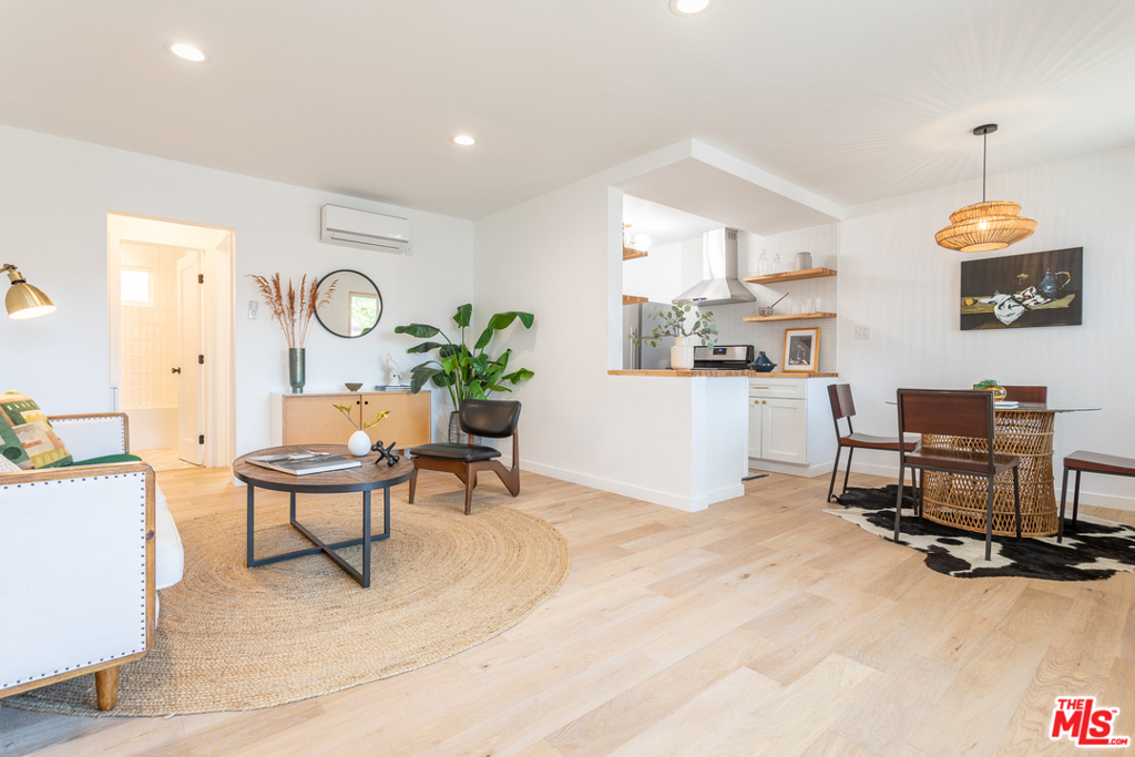 This stunning oversized one-bedroom Mid-Century beauty features white oak flooring throughout, classic design and views of the pool and Echo Park hills beyond. The open kitchen is bright with light and features all-new finishes and appliances, warm butcher block counters, open shelving, brass tones, and crisp white micro tile backsplashes. No details were spared. The large bedroom feels like a suite with double closets and floor to ceiling built-in shelving. The newly designed bath includes a deep tub and pattern tile floors. A hip 12-unit community with a pool, this one is magical with Palm Springs vibes, bordered by white brick, redwood lounge decks and lush landscaping, sitting up on a hill with hillside views and beyond, an urban paradise awaits. AC, in-unit laundry and parking, this jewel has it all. Great Echo Park location, three blocks from Sunset Blvd. restaurants, bars, cafes, shops, and Echo Park Lake. Welcome home.