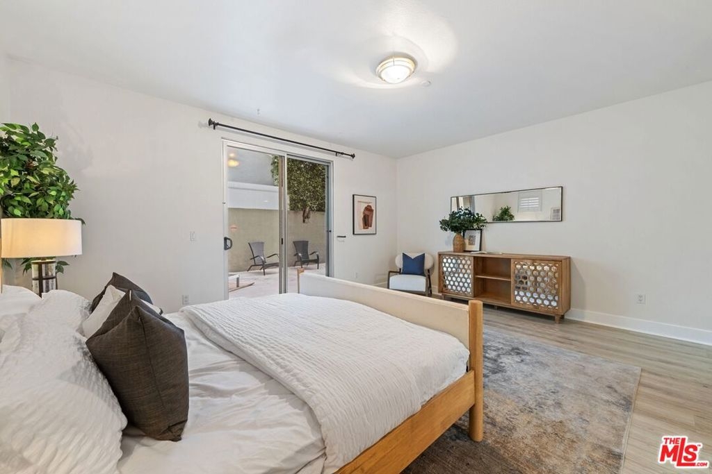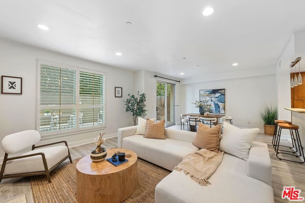 Sophisticated and spacious, this rear-corner unit feels like a house and features 2 bedrooms, 2.5 baths, and a den/office, highlighted by a private one-of-a-kind enormous patio. Designed for both comfort and elegance, this single-level condo offers an open floor plan with high ceilings, recessed lighting, plantation shutters, and beautiful flooring throughout. The living and dining areas flow seamlessly to the expansive patio and are enhanced by custom built-ins and a cozy fireplace, creating an inviting indoor-outdoor setting ideal for entertaining or relaxing. The gourmet kitchen is a chef's delight, complete with granite countertops, a breakfast bar, and stainless-steel appliances. The spacious primary suite also opens to the patio and includes a custom walk-in closet and a luxurious bathroom with dual vanities, a soaking tub, and a separate shower. The generously sized second bedroom features its own en-suite bathroom. Additional highlights include a built-in desk, powder room, in-unit washer/dryer, and central A/C & heat for optimal comfort. The contemporary 2003 building offers two separate parking spaces, extra storage, and guest parking. Ideally located near Century City, Rancho Park Golf Course, Westfield Century City, and Beverly Hills.