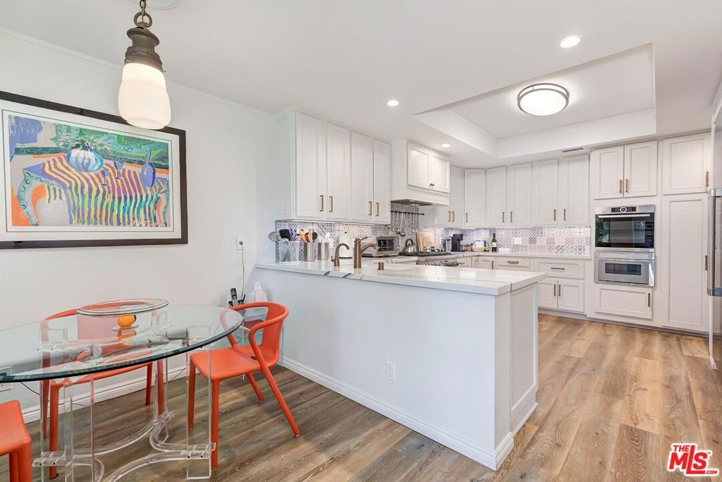 Beautiful classic designed remodeled single level condo in the coveted 24-hour guard gated Century Hill in Century City. Designer done to perfection in desirable interior location flooded with natural light. This remodeled contemporary style two bedroom offers warm parquet and wide plank light wood flooring, crown moldings and new upgrades throughout. The entry opens into the large living room & dining area with high ceilings, fireplace and floor to ceiling windows with privacy and views. The inviting large balcony has lush green tree top and pool views. The gourmet kitchen boasts top of the line appliances, gas cooktop and large breakfast area for dining. The primary suite has a lovely sitting area, opens to the balcony and marble tiled bath w/walk in closet. Spacious secondary en-suite guest bedroom and bath. This sophisticated condo is like living in a private home, but w/ all of the amenities & security of guard gated Century Hill with acres of stunning manicured grounds, state of the art gym, fully equipped conference room/event space, 5 pools/spas, Tennis courts, racquetball court & at home golf driving range. 24-hour guard gated security, 3 side by side parking spaces and huge private extra storage room in garage. Close to all world class dining and entertainment Century City and Beverly Hills has to offer!