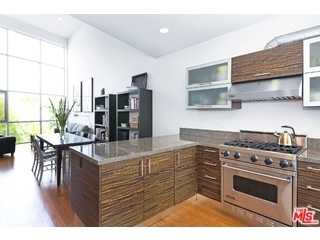 First time on the market since new: architect Jay Vanos's Hyperion Lofts' model unit. Special materials and details complement this 3-story townhouse with double garage and private, rooftop, observation deck. 18-foot ceiling above dramatic, open-plan, main level with mezzanine loft and half bath. Two bedrooms, each with en suite bath. In-unit laundry; extra storage; amenity-rich location; quiet; private. All levels capture abundant natural light and manifold views of the hills, city and mountains. Mint, move-in condition.