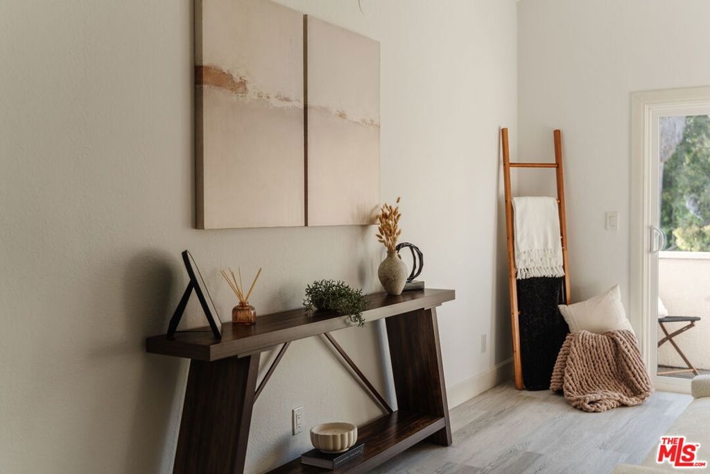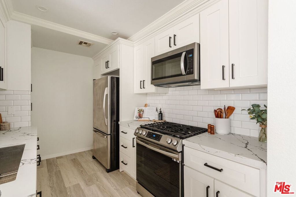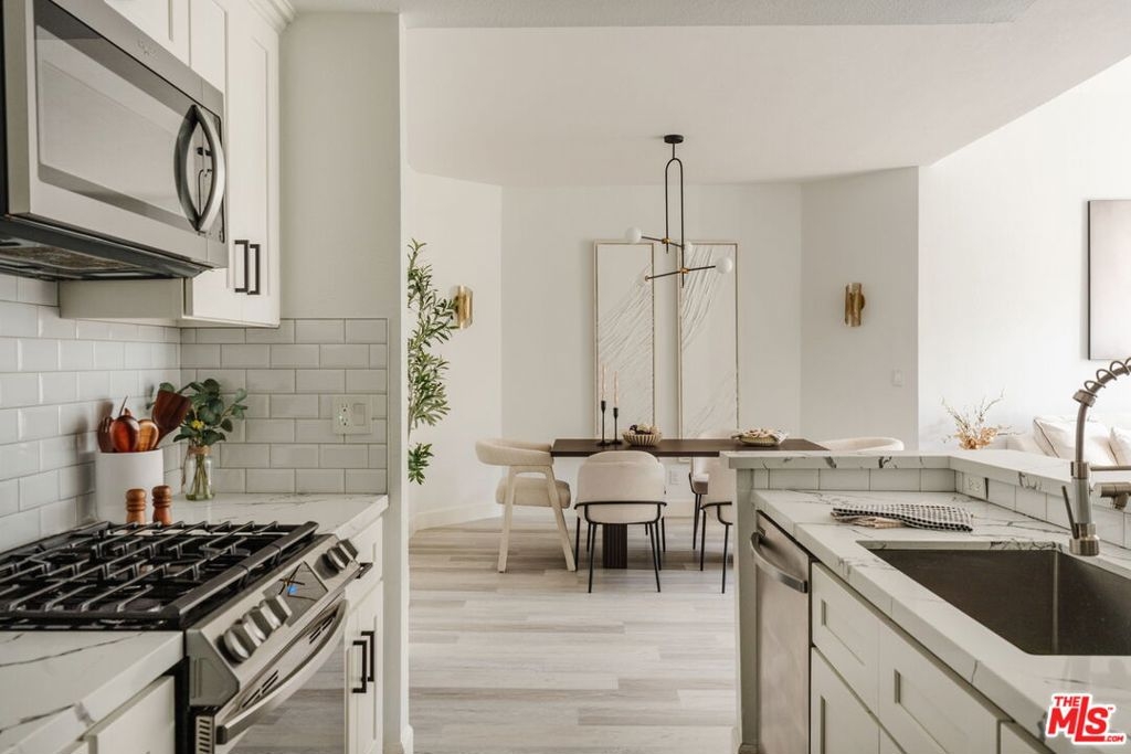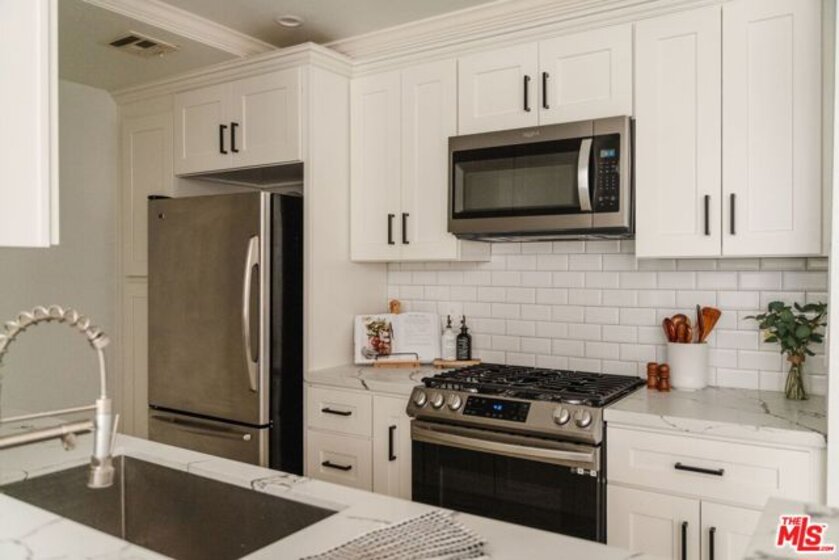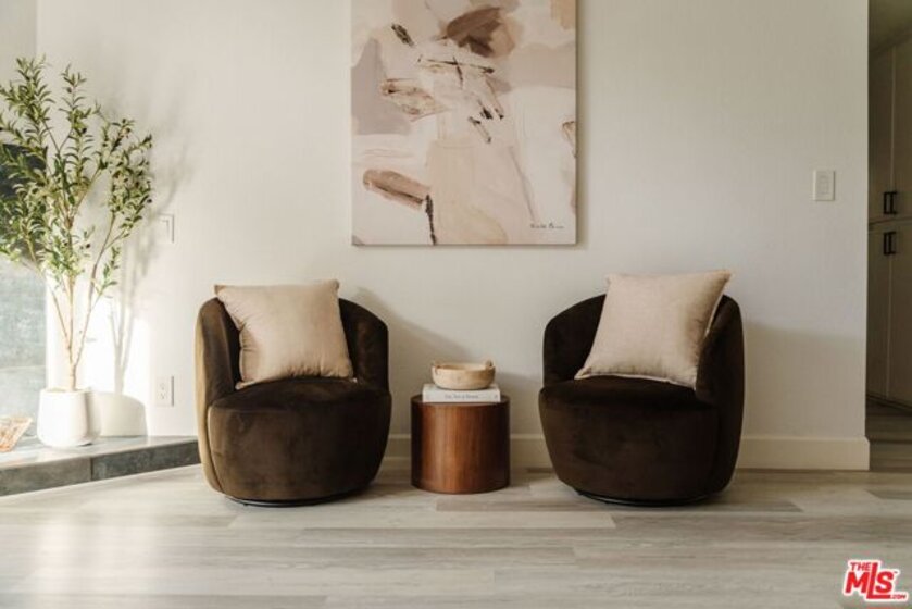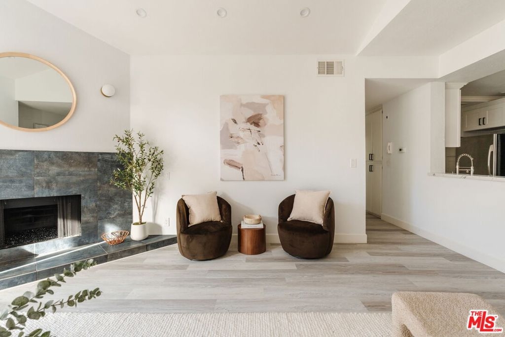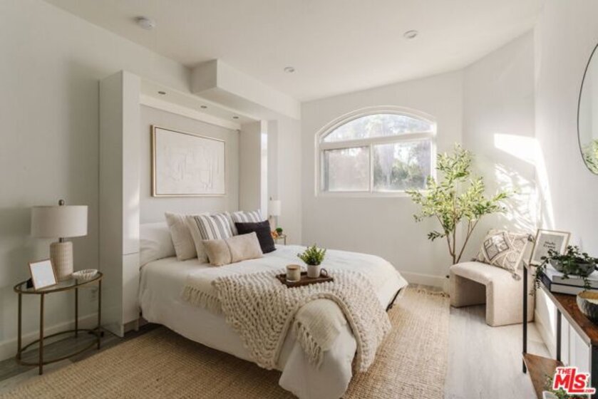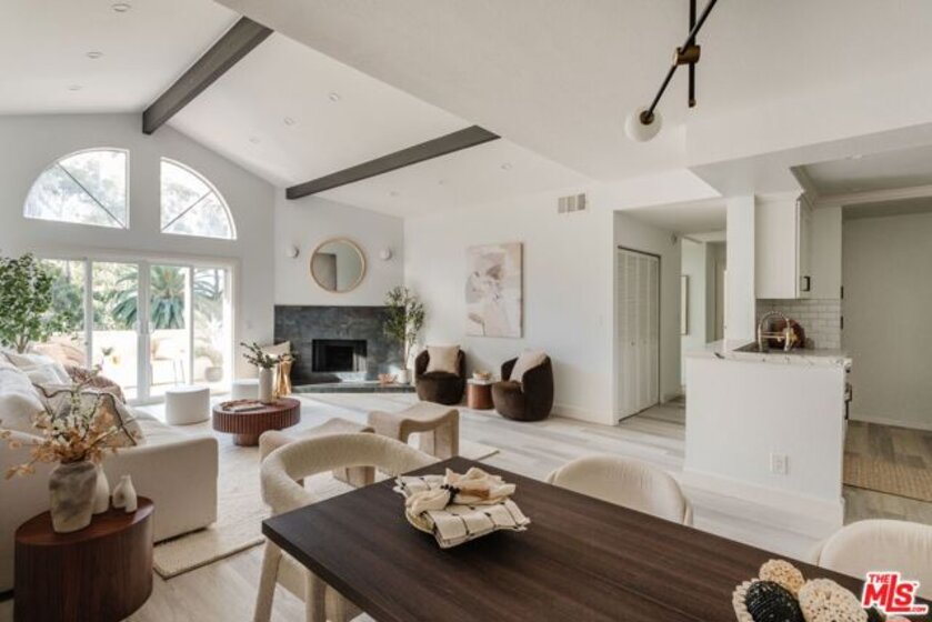 Perched on the top floor, this fully updated corner penthouse lives like a true escape in the Hollywood Hills, with the sky as your only upstairs neighbor. Nearly 1,300 square feet of airy, single level living is wrapped in natural light, vaulted ceilings, and an open great room anchored by a gas fireplace that instantly sets the mood for both entertaining and quiet nights at home. Tucked into its own private wing, the primary suite feels like a retreat, complete with a separate balcony, a generous walk in closet, and a spa inspired ensuite with dual vanity. Rare, real world perks seal the deal: a full size in unit washer and dryer, elevator access with no stairs, and two side by side parking spaces in a secure garage. Add the advantage of a low HOA and you get the quintessential Hollywood Hills lifestyle without the usual overhead. From here you are minutes to Universal, Warner Bros, and Burbank, plus easy access to iconic LA days and nights, from the Hollywood Bowl to Lake Hollywood trails, Griffith Park views, and the dining and nightlife of Studio City and Hollywood.
