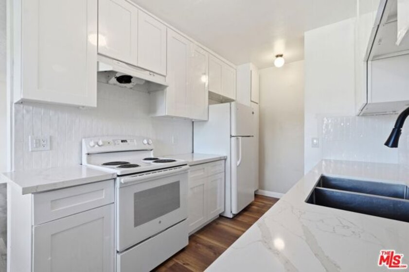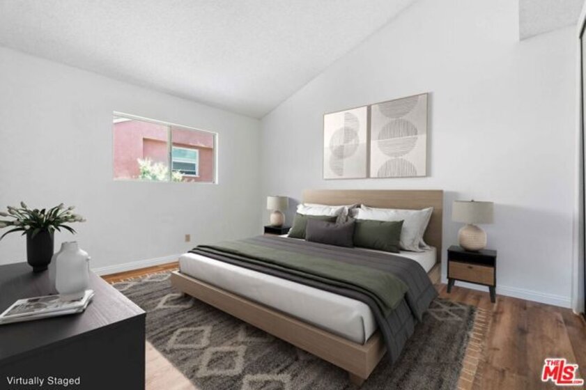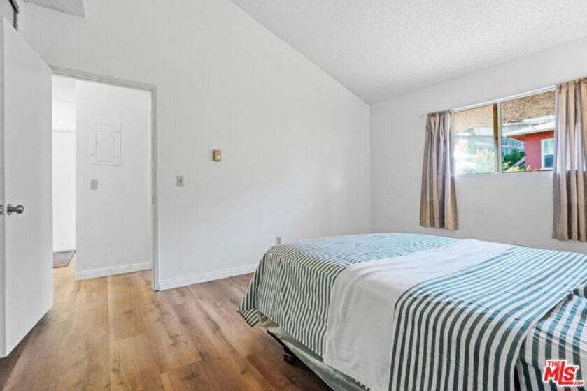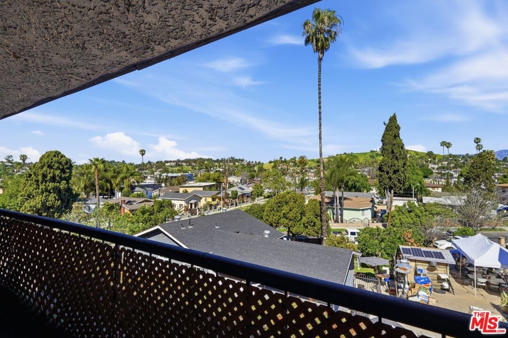 RING IN THE NEW YEAR WITH LUCKY UNIT #8 AND WITH BREATHTAKING MILLION-DOLLAR VIEWS! Gracefully situated at the leg of a hilly street, Pueblo Villas is a special and small tight-knit 10-unit condo community located in a tranquil hillside neighborhood comprising of mostly single-family homes in the heart of El Sereno. A fully gated community, Unit #8 is not only a move-in ready condition and highly desirable top-floor unit, but is also the best located unit in the community as the middle top-floor unit offering the sweeping 180 degrees panoramic views. Upon entry and through the formal short hallway, you are greeted into the open and spacious living room, where you will feel immersed with natural light coming through the sliding glass door. This home offers quintessential Los Angeles indoor-outdoor living, excellent flow, and the sliding glass door allows for the seamless transition into your own private balcony. The north-facing balcony is generously spacious and serves as the perfect space to relax, unwind, and to enjoy a cup of your favorite coffee or tea while enjoying the cool gentle breezes from the Northern winds and taking in the gorgeous and sweeping panoramic vista views that stretches from Monterey Hills/South Pasadena Hills to the San Gabriel Mountains. Naturally bright and airy, the home itself is warm, inviting, and offers 2 bedrooms, 1 full bathroom, and 800 square feet of living space. Enjoy brand-new waterproof vinyl plank flooring and a fresh coat of interior paint throughout the entire unit. A highly functional floor plan, the living room naturally flows into the open dining area that features a window directly looking outward allowing this dining area to also double as a breakfast nook with lovely tree-top views. The elegant galley-style kitchen is brand new and is highlighted by the beautiful Calacatta quartz countertops, refined all-white Shaker-style cabinetry, a undermount sink, a new faucet, and a stylish full backsplash. Both of the bedrooms offer Southern natural light exposure, are spacious, airy, and has plenty of closet space including an oversized closet at the primary bedroom. The bathroom offers a full-size bathtub and is the perfect blank canvas waiting for you to reimagine to your own personal style and tastes. The unit interior is rounded out by a convenient washer and dryer set-up hidden at the kitchen corner, and also offers a coat closet and a linen closet at the hallway. The private garage is a 2-car tandem garage and offers plenty of storage space. HOA dues are $480.00 per month and covers water and trash. The location of this home offers the best of all worlds: you are tucked away in a great neighborhood enjoying calm and serene El Sereno hillside living while you are just moments away to the rhythm and beat of the city. Exceptionally centrally-located with easy access to major freeways (710, 10, 5, 110), you are just minutes away to numerous parks, major higher education institutions (Cal State LA, Occidental College, USC), South Pasadena, Old Town Pasadena, and to the rest of the San Gabriel Valley. You are also just a stone's throw away to all of the vibrant Northeast LA neighborhoods (including Highland Park, Mount Washington, Eagle Rock), to Downtown Los Angeles, Chinatown, Little Tokyo, Arts District, and to several major stadiums and entertainment venues including Dodger Stadium and Crypto.com Arena. With so much to offer, this is truly an outstanding opportunity that you would not want to miss to become the new owner of this lovely home!