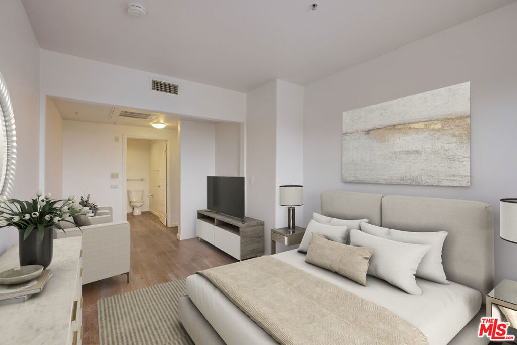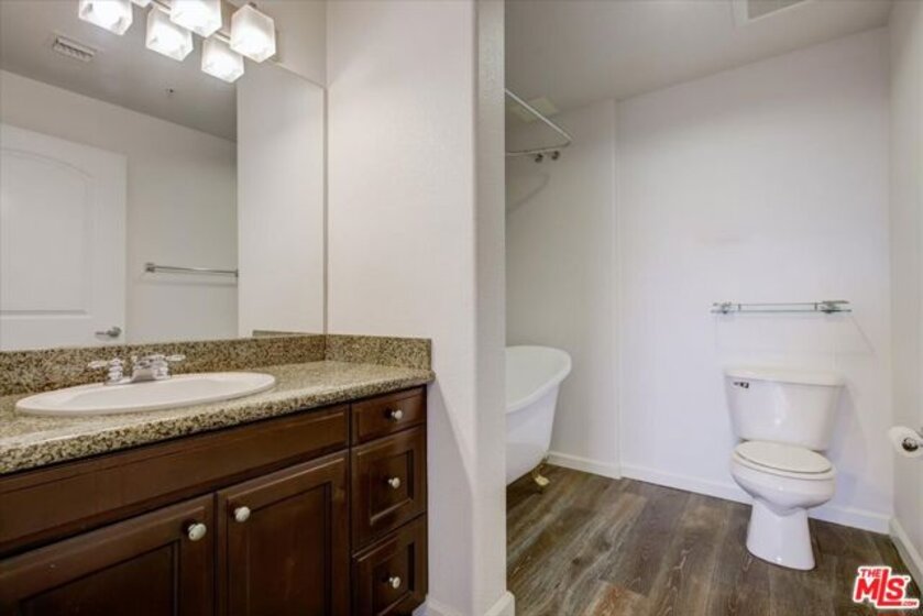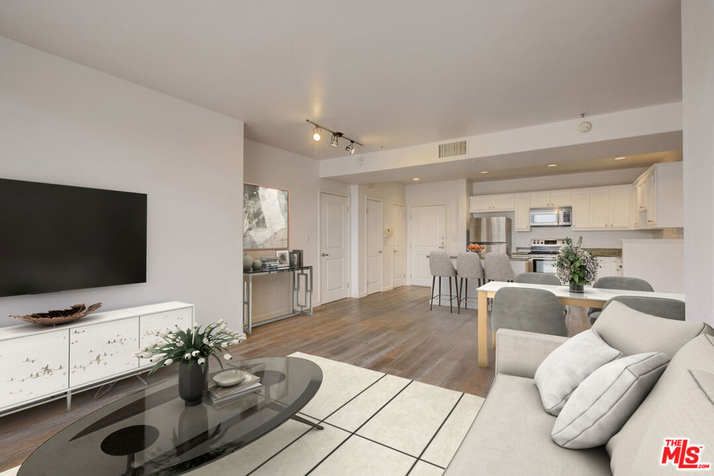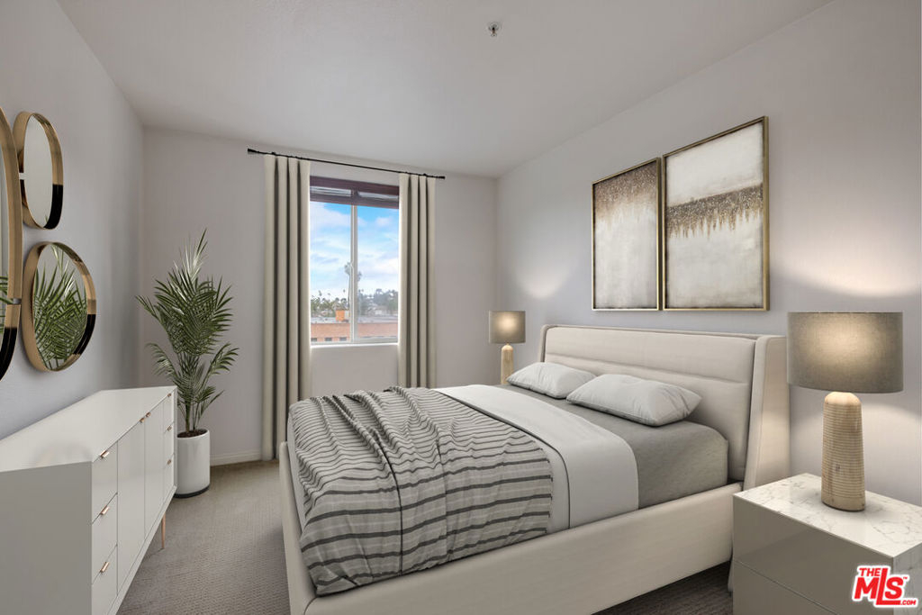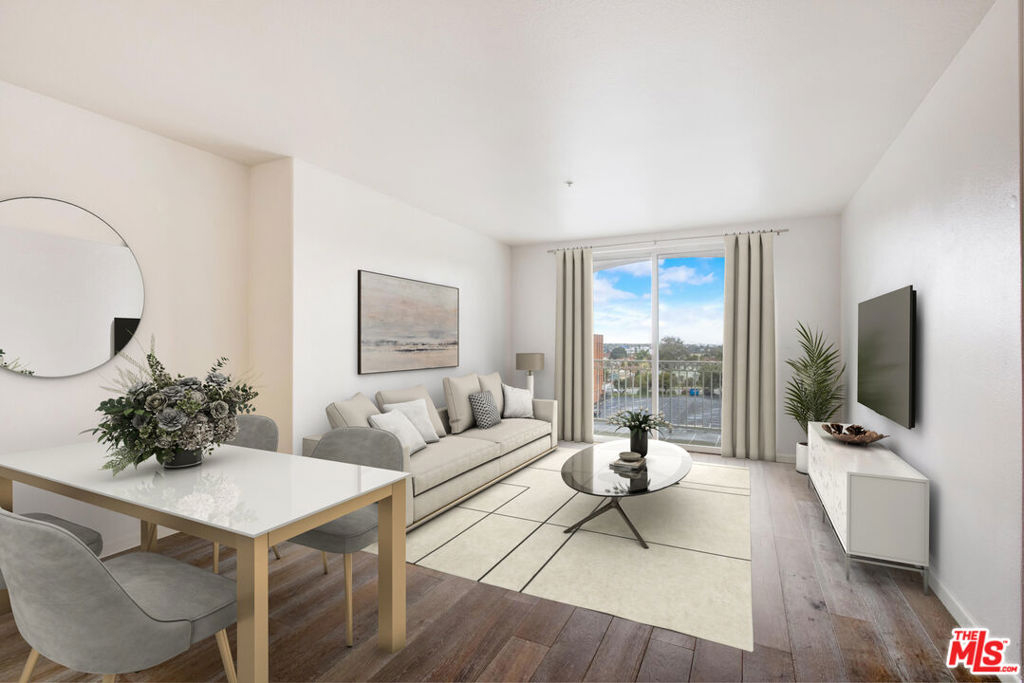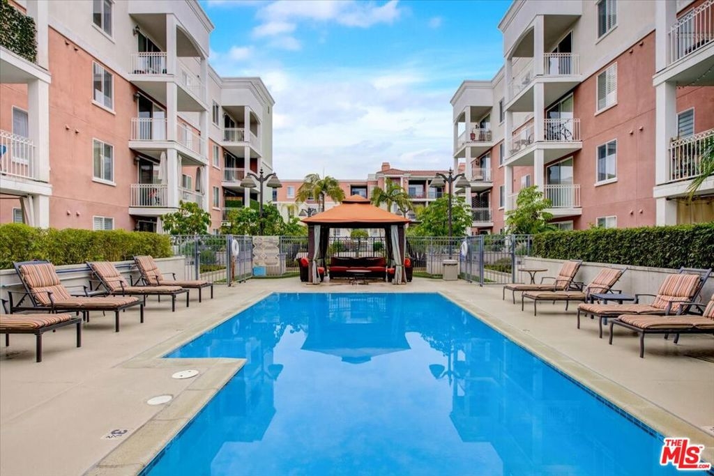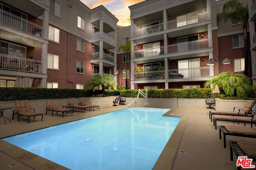 Welcome to the Bedford Promenade the sought after condo community in Baldwin Hills. This top floor unit provides tree top views and city lights view from balcony. Only one common wall. Freshly repainted kitchen and primary bedroom cabinetry. The claw-foot bathtub in second bedroom provides a special touch! The buildinging is secure, lockers for packages provided in lobby/mailbox area, gated garage parking with guest spots...amenities including pool, fitness center and recreation room. Conveniently located to shopping, eateries and freeways. Also the much anticipated Crenshaw/LAX line in the neighborhood. In-unit laundry allowed w/ HOA approval. This unit and location has much to offer!!! Please note: virtual staging photos have been used in the marketing of this unit.